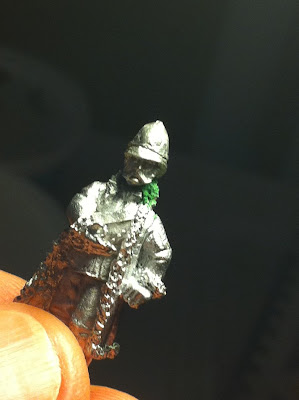 Finally, after studying the General Roberts figure for a while longer I decided to add a bit more fur trim to one side of his collar, where the molded-on fur it had been cut away a bit too much during the decapitation process! This I did with some green model putty…