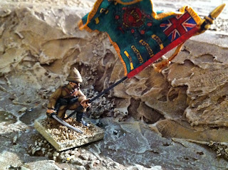 With the surgery completed, Colonel Galbraith and the Regimental Colour of the 66th (courtesy of the Flag Dude and now flying on a cut-down pole, to make up for having to be glued into the top of his hand!) were shipped off to Igor (of Igwargminis) for a fine paint-job: