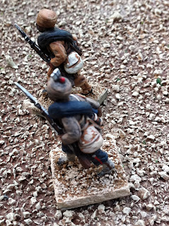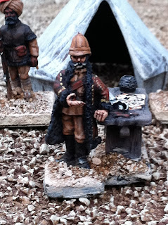Next are some pics of various conversions back from the talented Igwargminis, AKA: Ig, AKA: Igor Olshansky. Included are a couple of conversions I have yet to put up a post about — a WOODBINE DESIGN “WWI In the East” BRITISH CASUALTY SET (available from Gripping Beast: LINK). I swapped the peaked-cap head of the kneeling chaplain offering the wounded solider some cigarettes out for a Glengarry-wearing head from the Empress Miniatures Zulu War ACCESSORIES RANGE. I also converted an additional kneeling figure offering a sip from his water-bottle, putting one of Woodbine’s WOUNDED HEADS (available here: LINK) onto the body of a kneeling Wargames Foundry Indian mountain gunner, whose own head had already been donated to create the Sikh orderly for General Roberts! I removed the ramrod from his hand and replaced it with a spare WATER-BOTTLE from the same Empress Miniatures Accessories range.