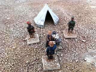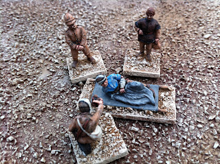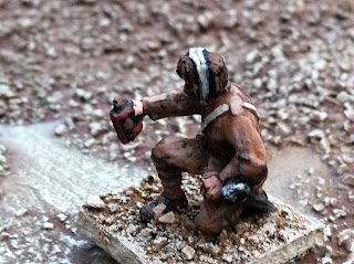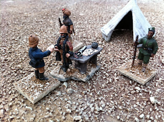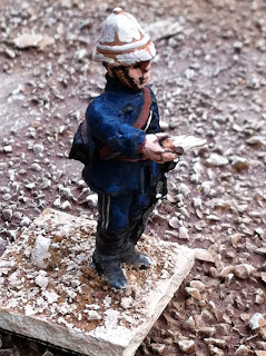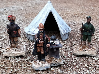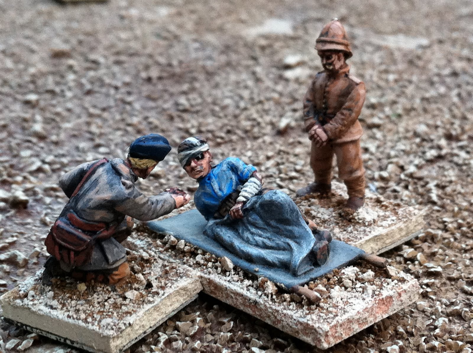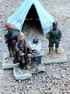 Next are some pics of various conversions back from the talented Igwargminis, AKA: Ig, AKA: Igor Olshansky. Included are a couple of conversions I have yet to put up a post about — a WOODBINE DESIGN “WWI In the East” BRITISH CASUALTY SET (available from Gripping Beast: LINK). I swapped the peaked-cap head of the kneeling chaplain offering the wounded solider some cigarettes out for a Glengarry-wearing head from the Empress Miniatures Zulu War ACCESSORIES RANGE. I also converted an additional kneeling figure offering a sip from his water-bottle, putting one of Woodbine’s WOUNDED HEADS (available here: LINK) onto the body of a kneeling Wargames Foundry Indian mountain gunner, whose own head had already been donated to create the Sikh orderly for General Roberts! I removed the ramrod from his hand and replaced it with a spare WATER-BOTTLE from the same Empress Miniatures Accessories range.