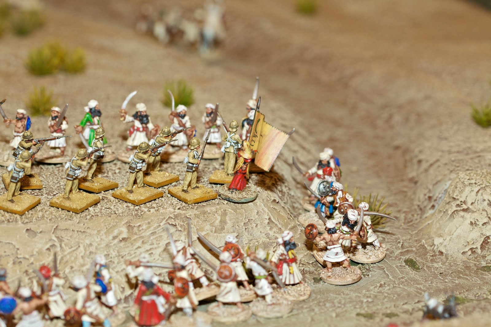 Fresh Ghazis appear from Maiwand and advance to north edge of Mundabad Ravine, in preparation for charging the 66th Berkshires on the lip of the ravine above…