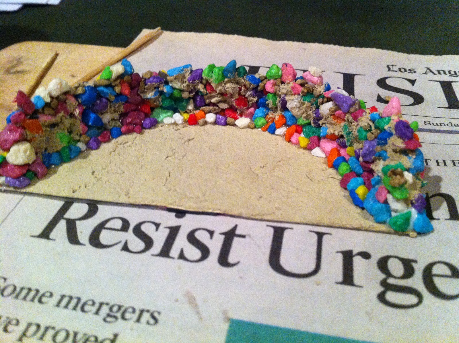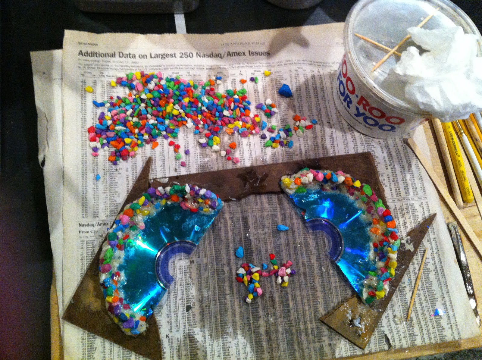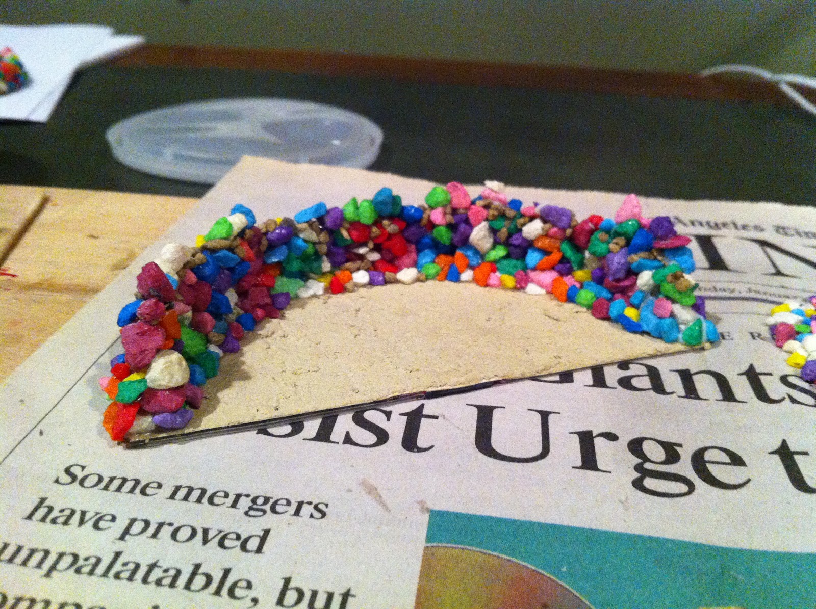 Then add more glue to the top and another layer of pebbles…
