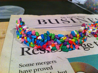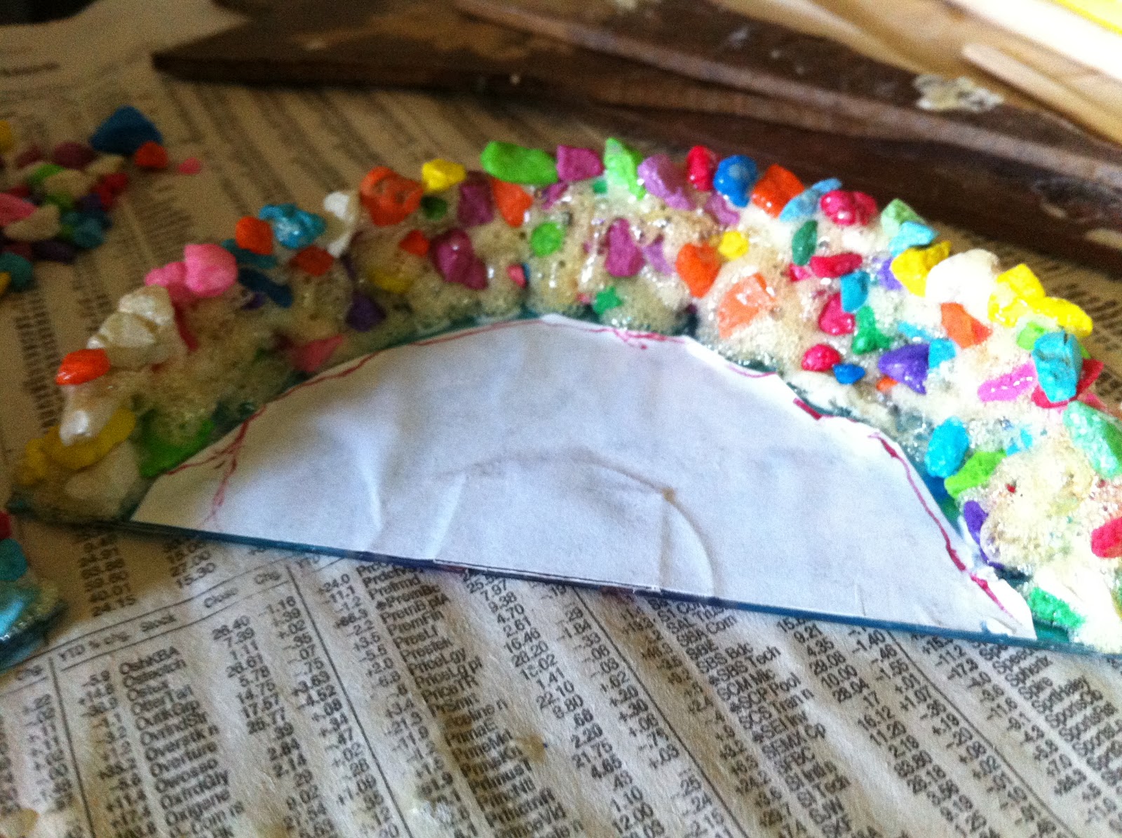 Next I added a bead of white glue around the curved edge of the semi-circle…
