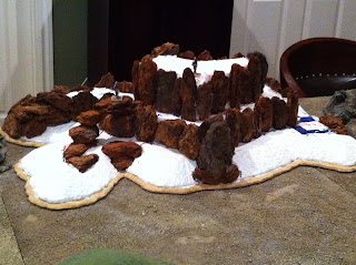 With the hill complete, it was back to the table to see how the “triple spire” rocky contours looked in context…