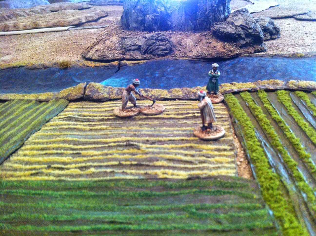 So, if I was going to make my table resemble Charasiab battlefield, I needed to add some farmland.  As visible in both period illustrations and the satellite view courtesy of Google Earth, the arable land in this area is divided up into many, many small holdings.