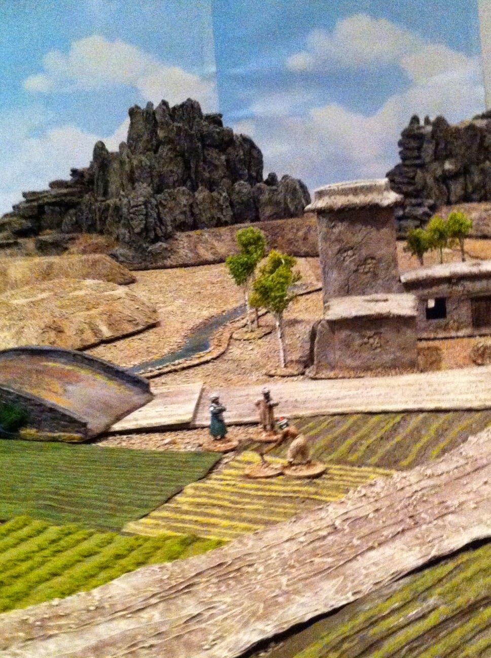 So, if I was going to make my table resemble Charasiab battlefield, I needed to add some farmland.  As visible in both period illustrations and the satellite view courtesy of Google Earth, the arable land in this area is divided up into many, many small holdings.