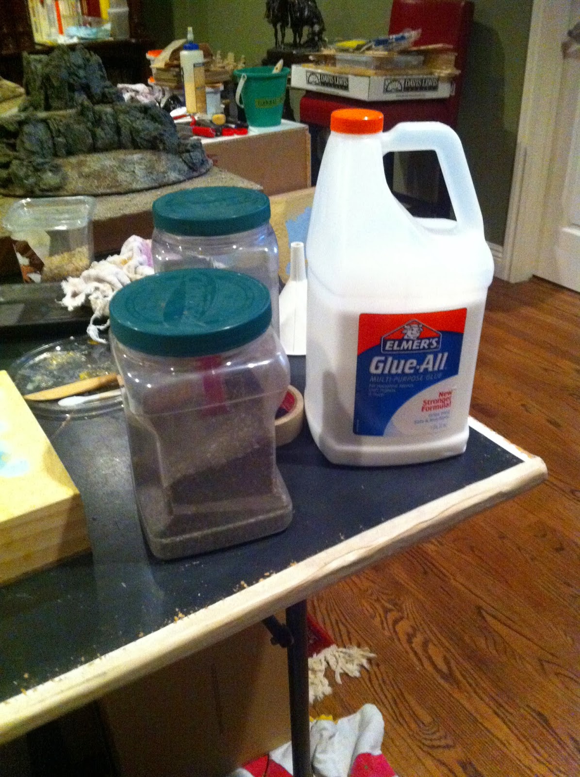Then I went to work with the Elmer’s Wood Putty on the straight river section…