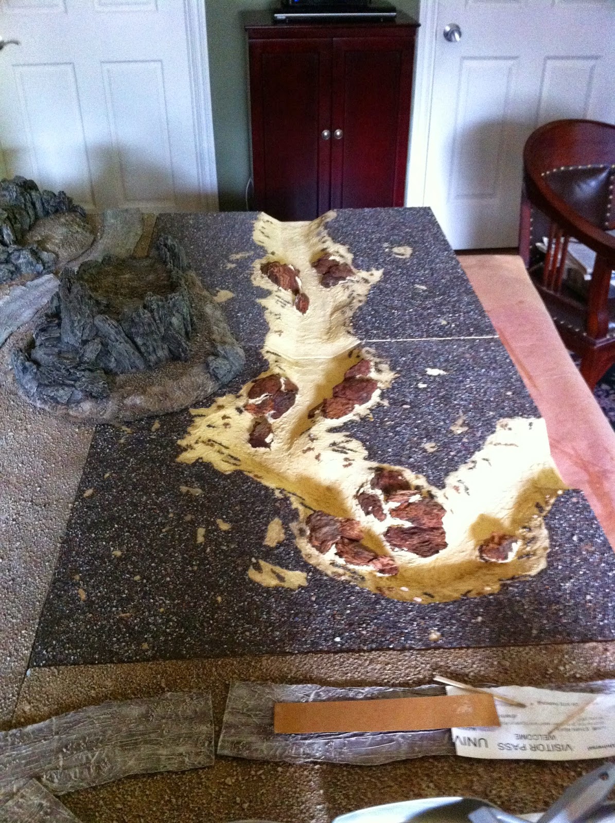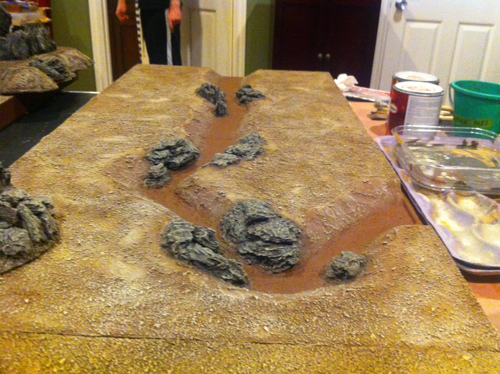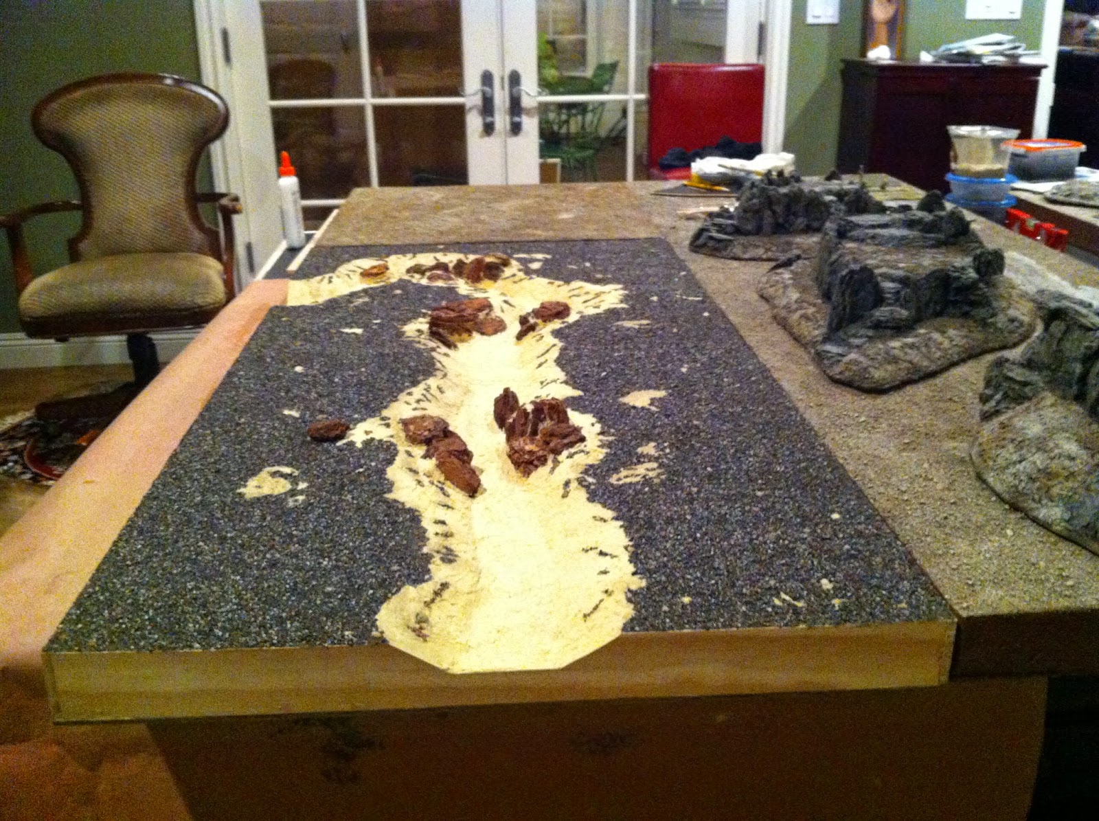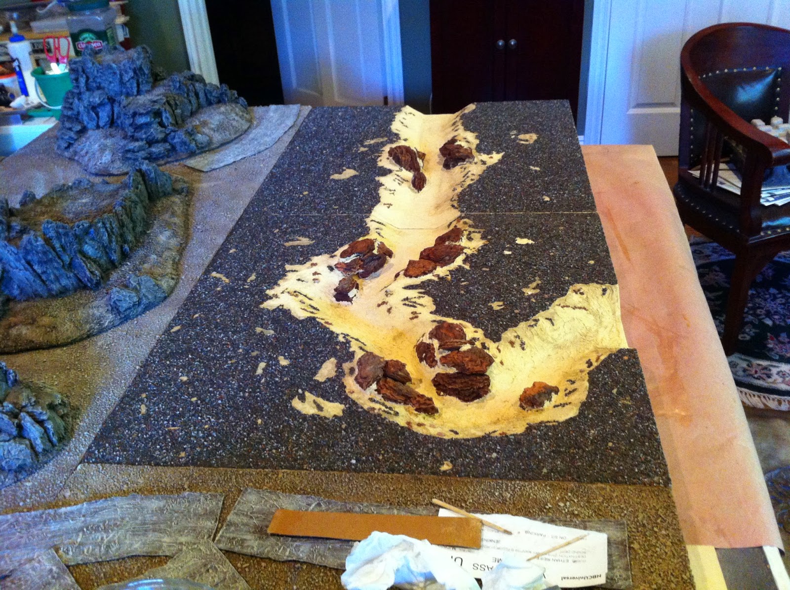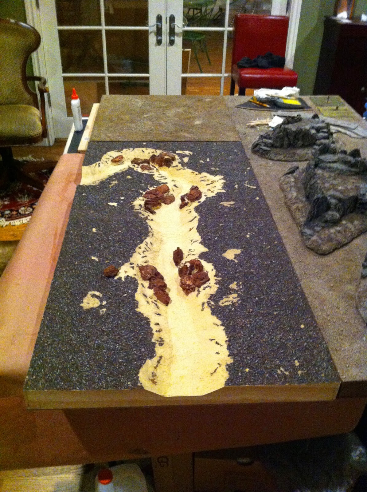 Then I went to work with the Elmer’s Wood Putty on the straight river section…