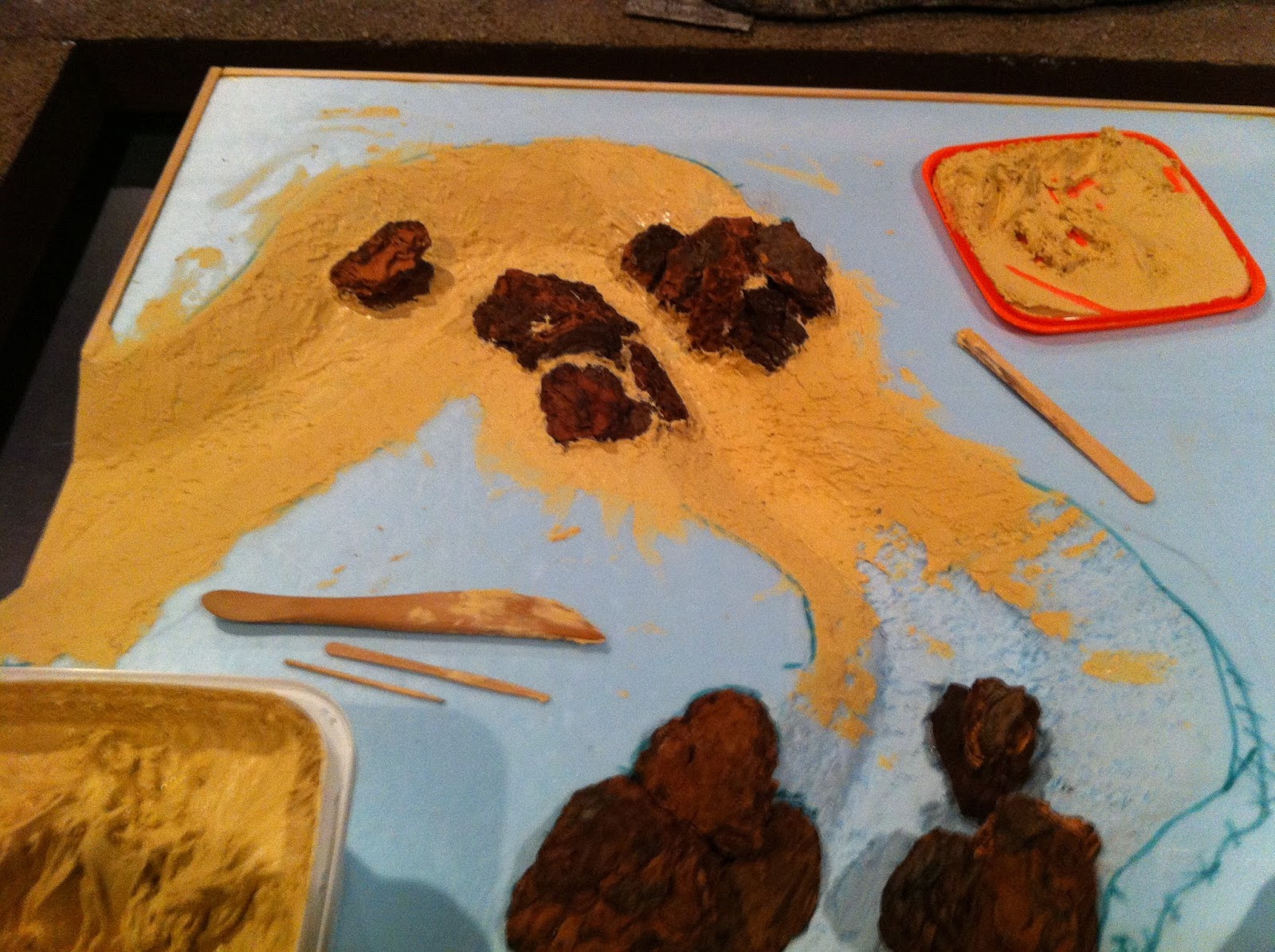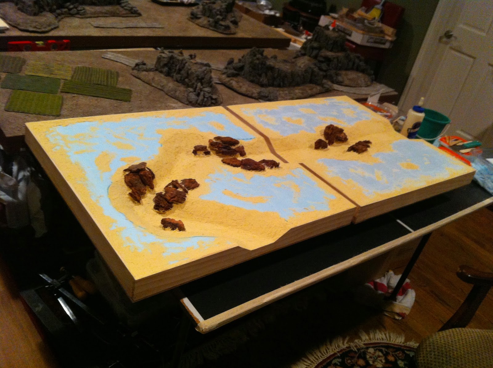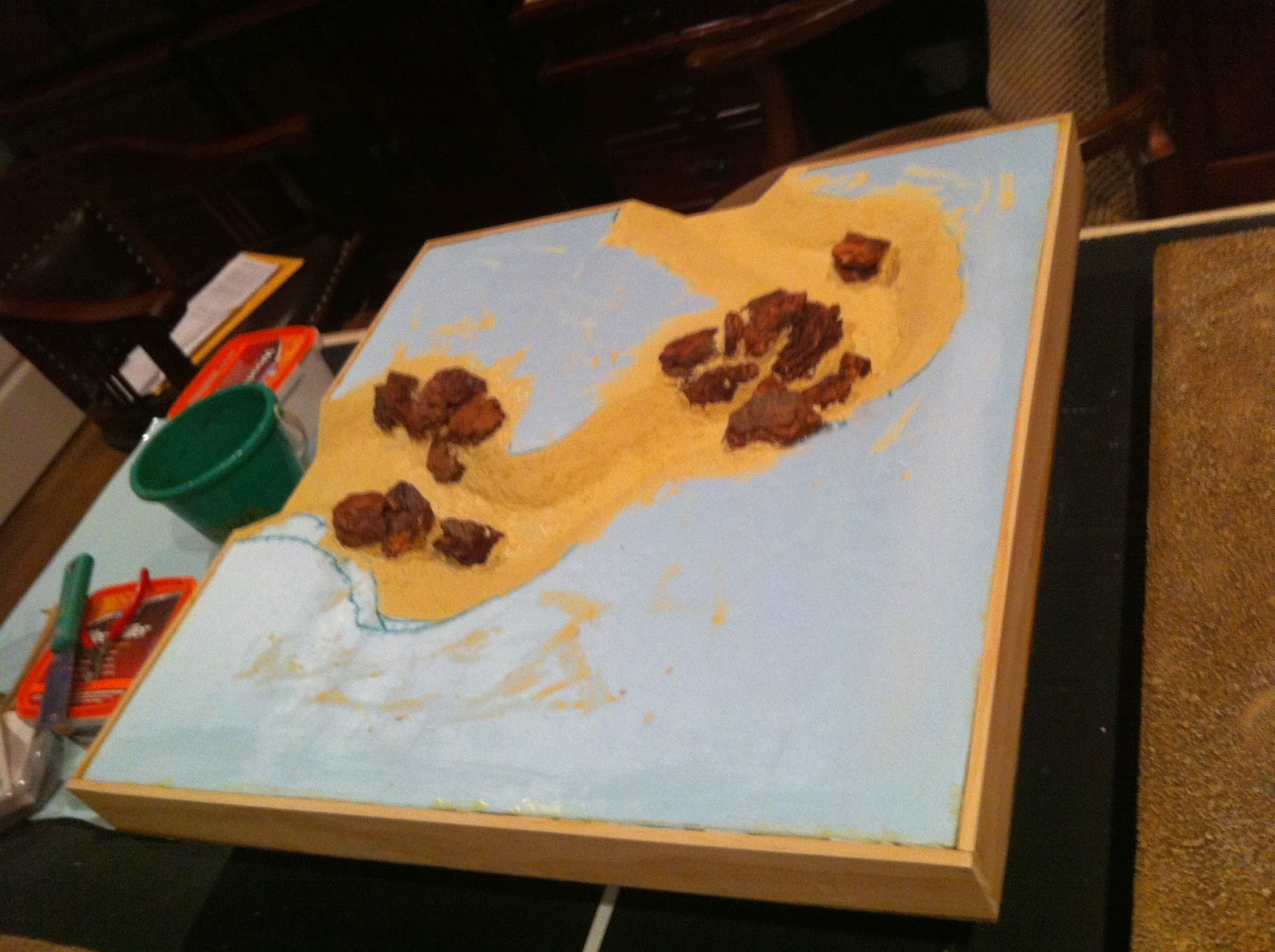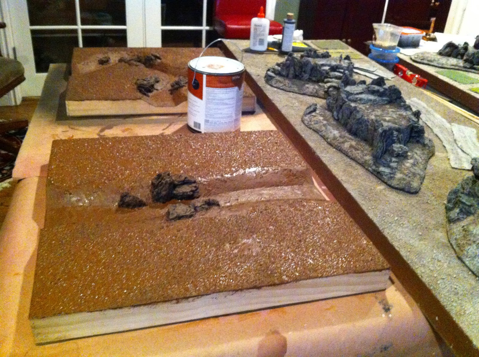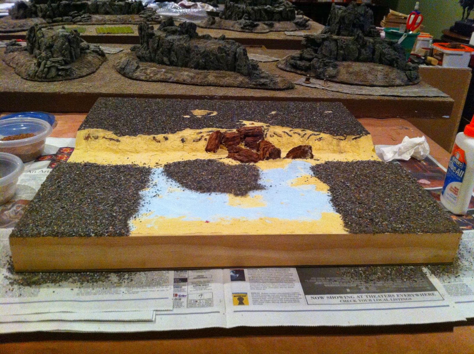 Then I went to work with the Elmer’s Wood Putty on the straight river section…