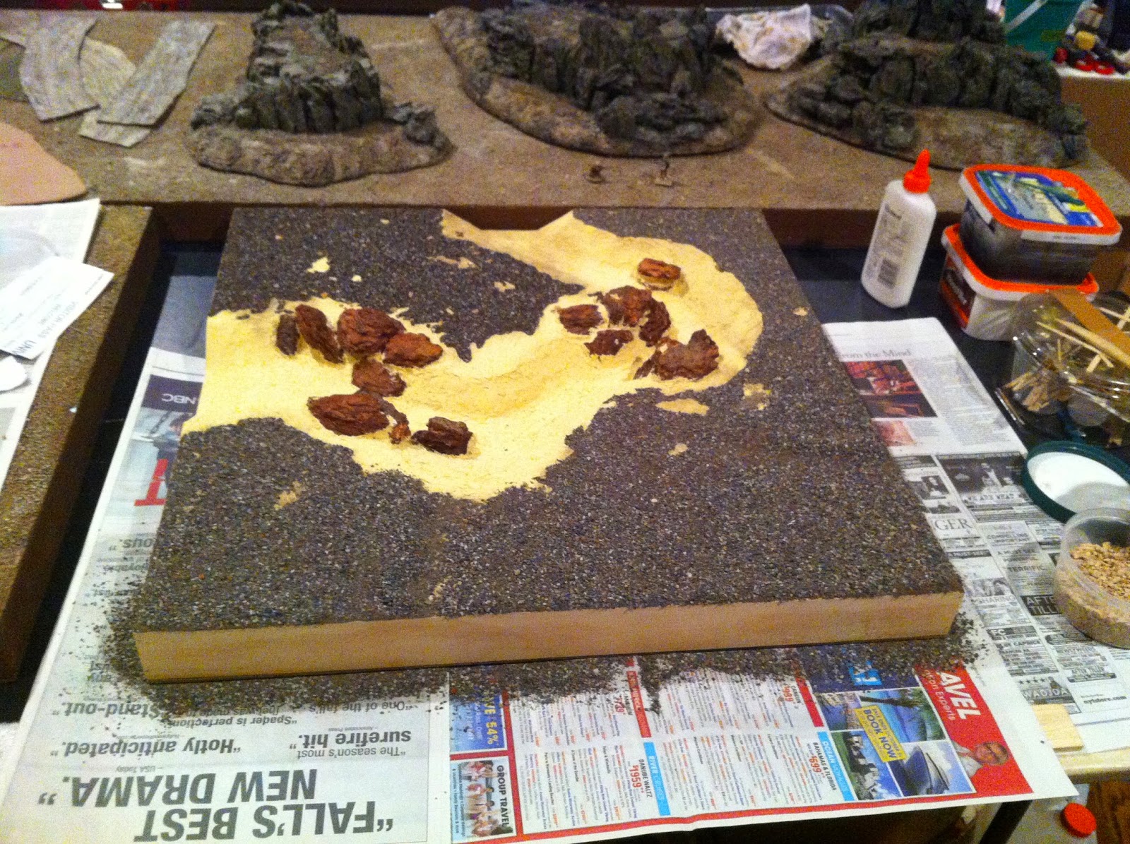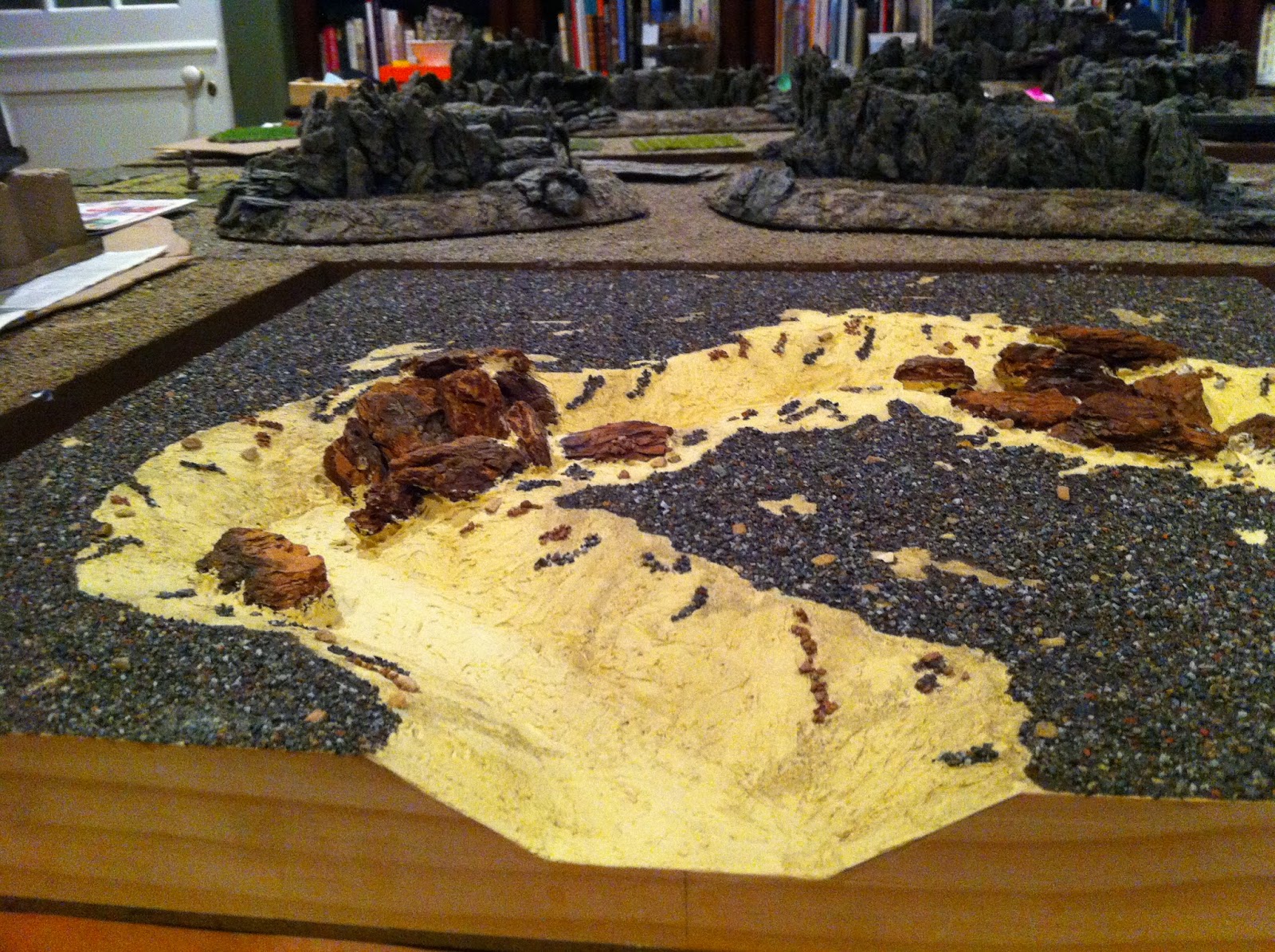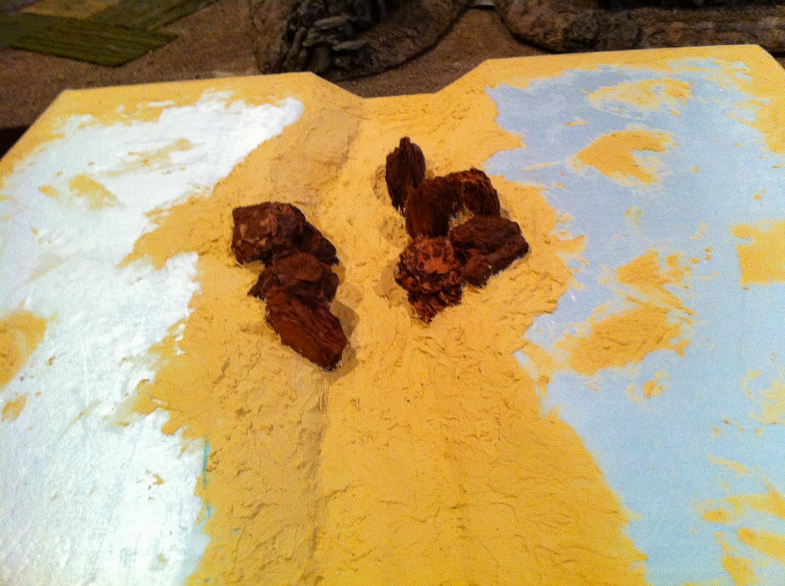 With the ground-cover done, it’sback to the ROCKS to match them up with the various Rocky Wood-Chip Hills I’ll be using for all the high ground on this lay-out…