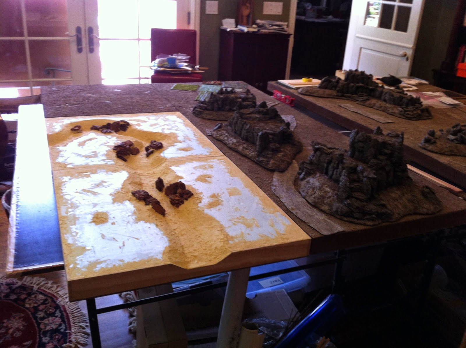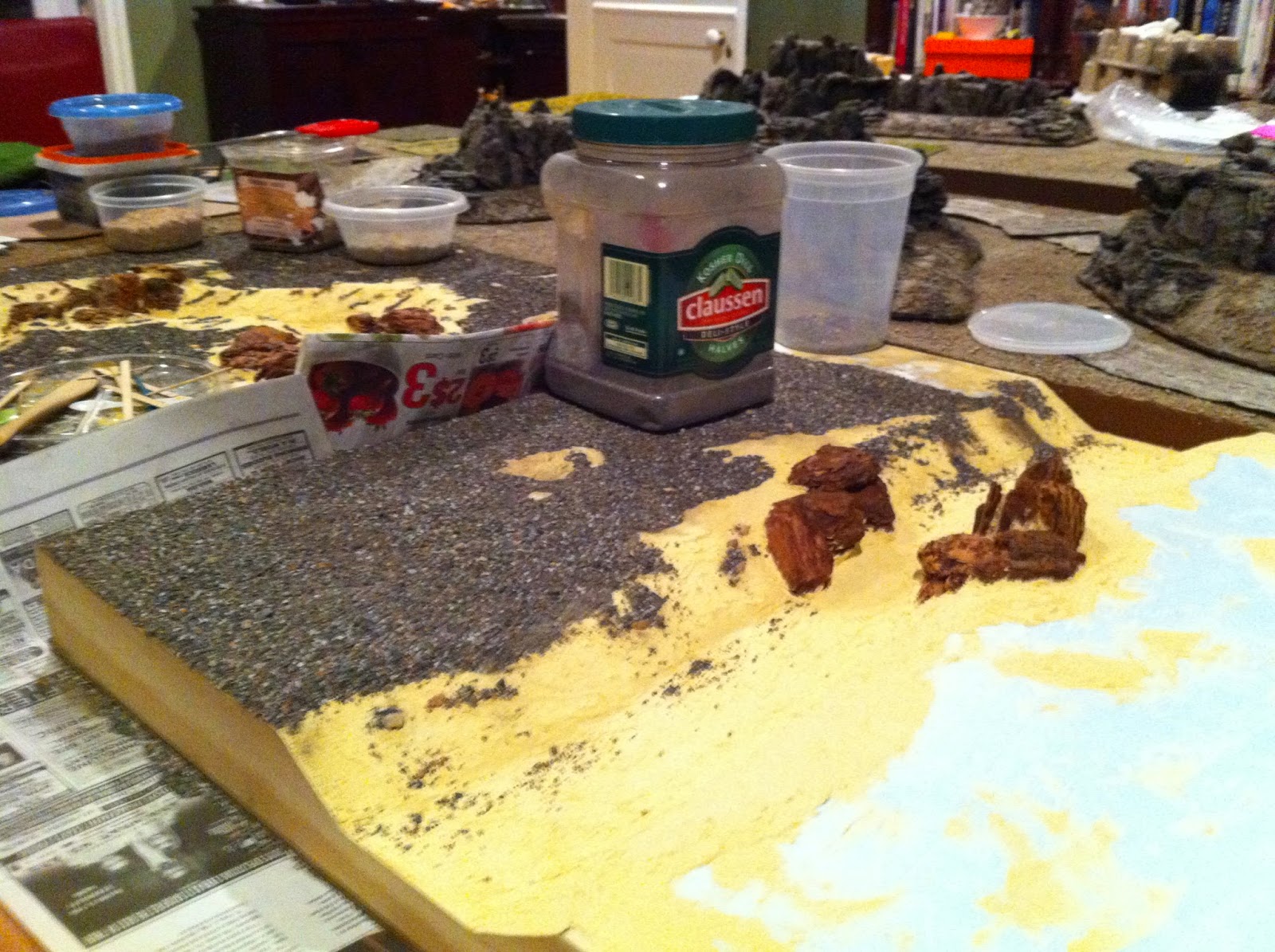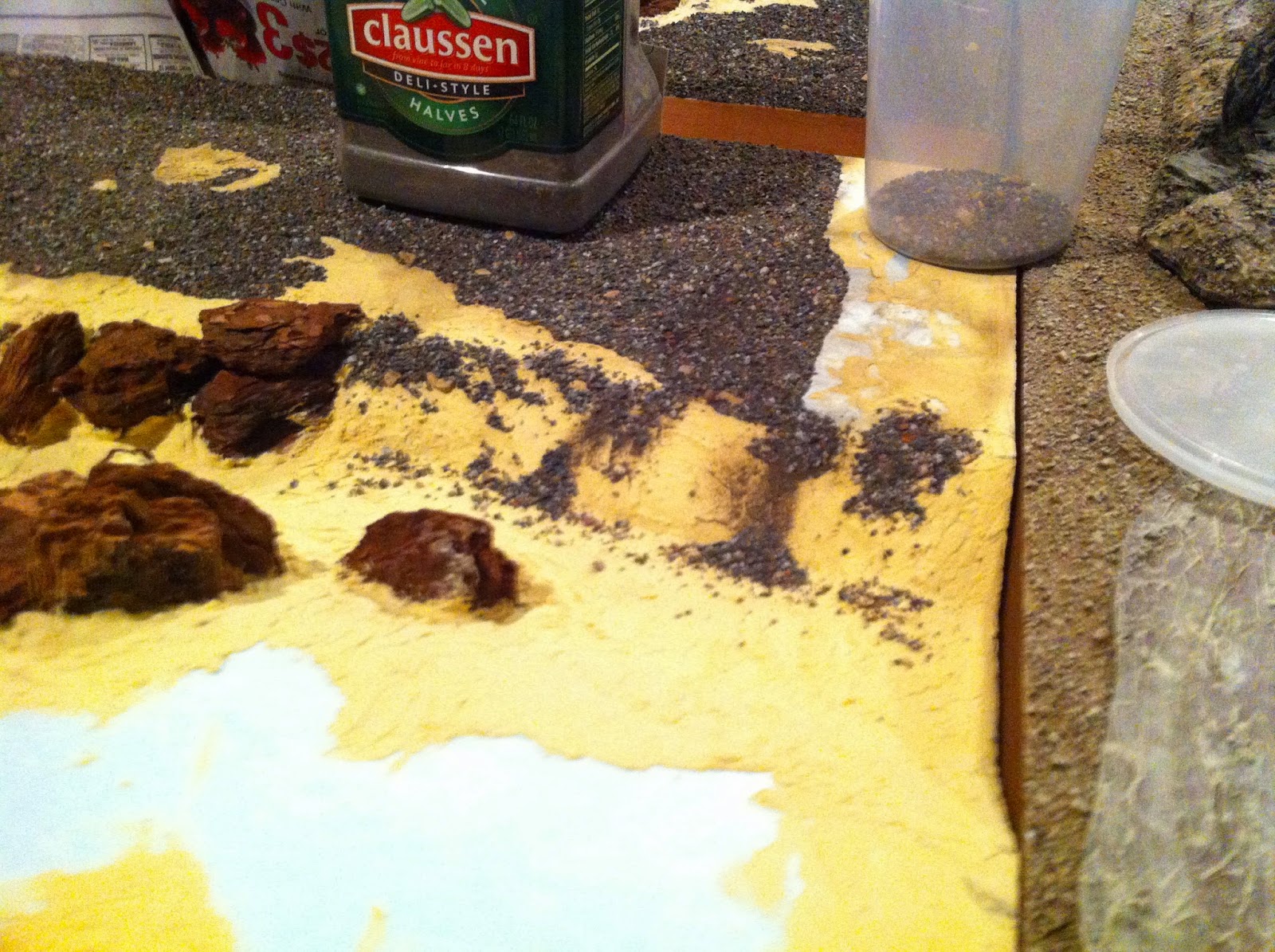 With the ground-cover done, it’sback to the ROCKS to match them up with the various Rocky Wood-Chip Hills I’ll be using for all the high ground on this lay-out…