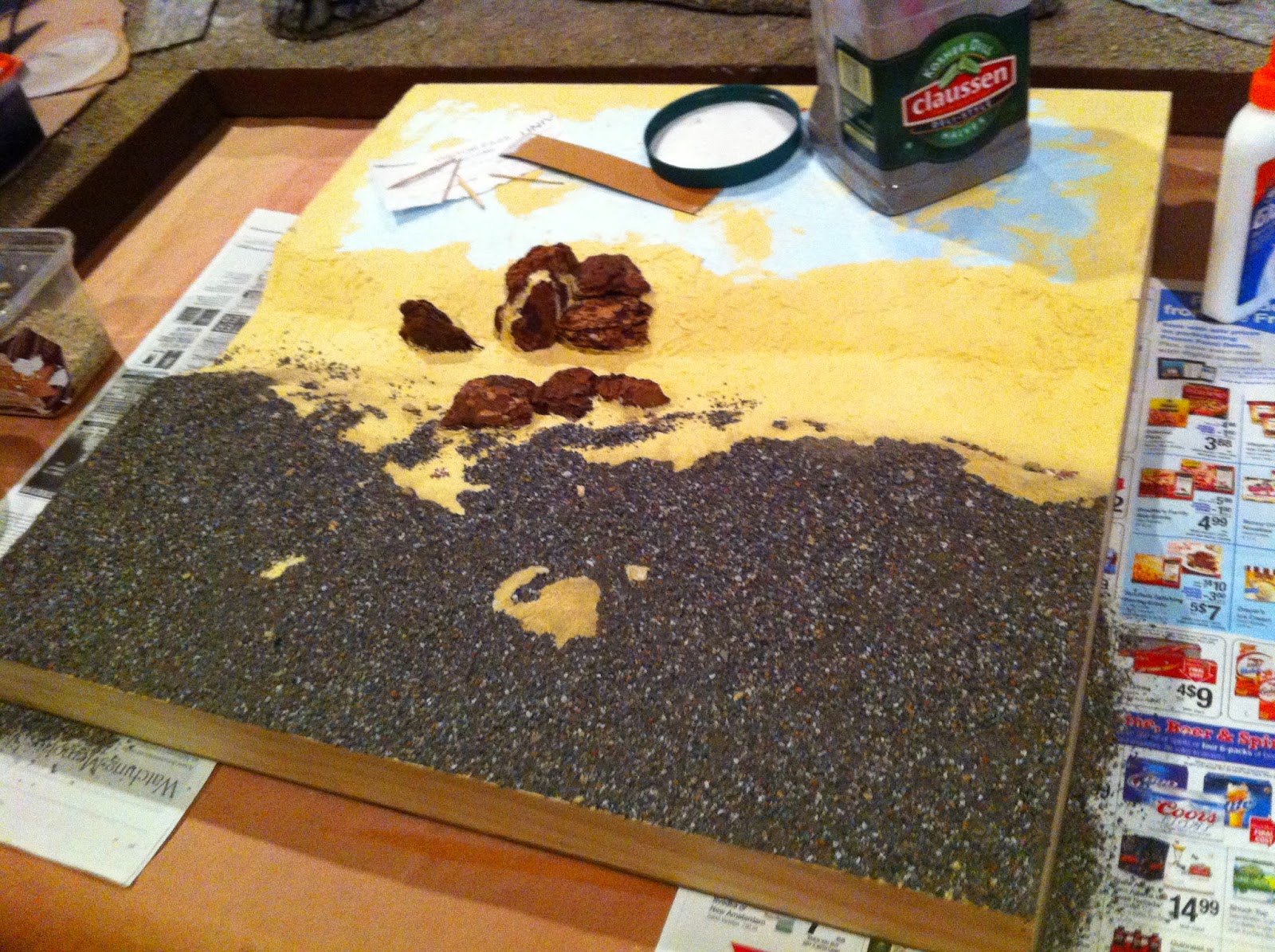 Moving on to glue ballast and pebbles for ground-cover on the straight section…