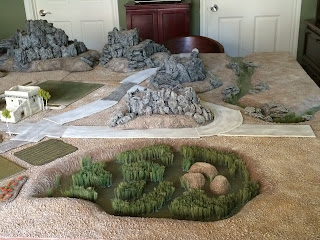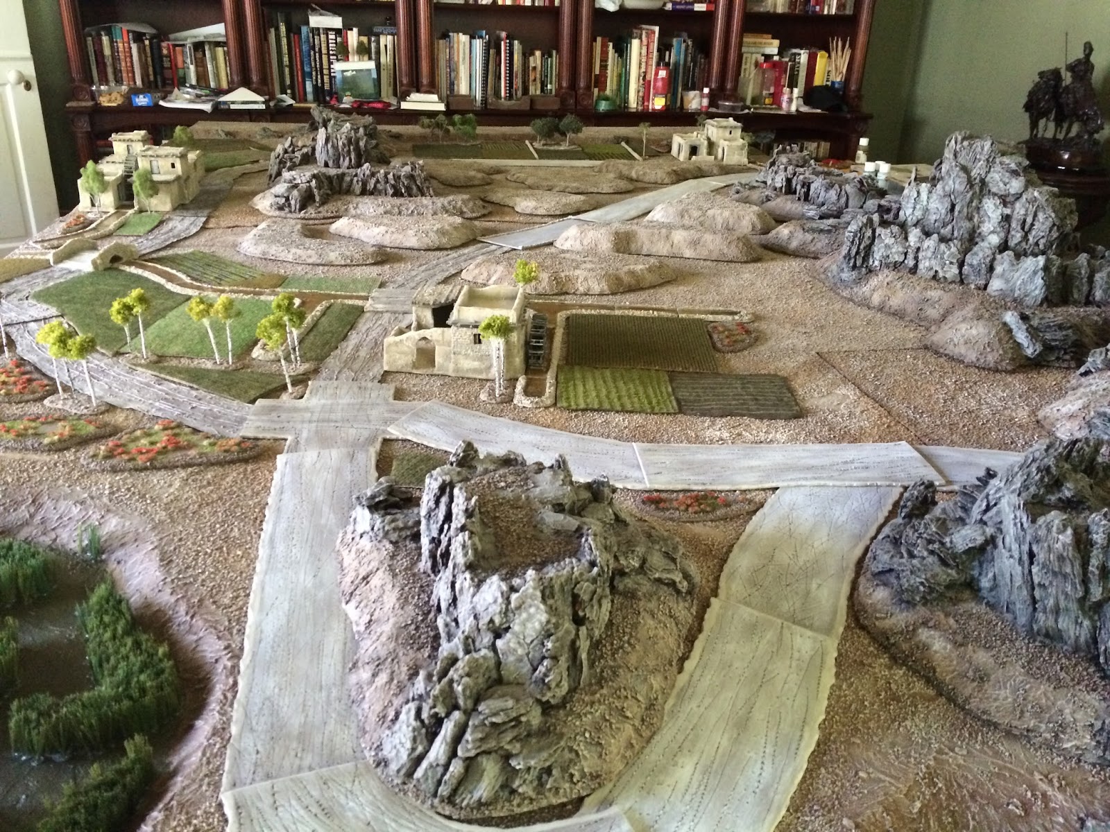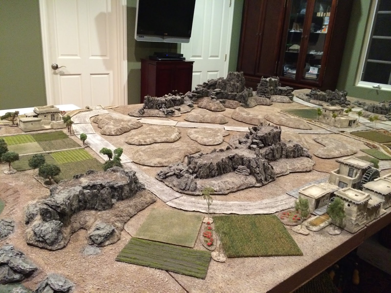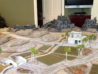 It looks like a few good gaming buddies of mine will manage to visit LA around that same time, for the purpose of playing a bunch of play-tests of the Charasiab scenario which I built — or in the case of the villages, bought — all this stuff for.  Of course I made it all as seperate, interchangeable features, which did add a lot of time to the building process, but will give me some nice versatility for  future scenario design and allow the pieces to be more useful for gaming in general.