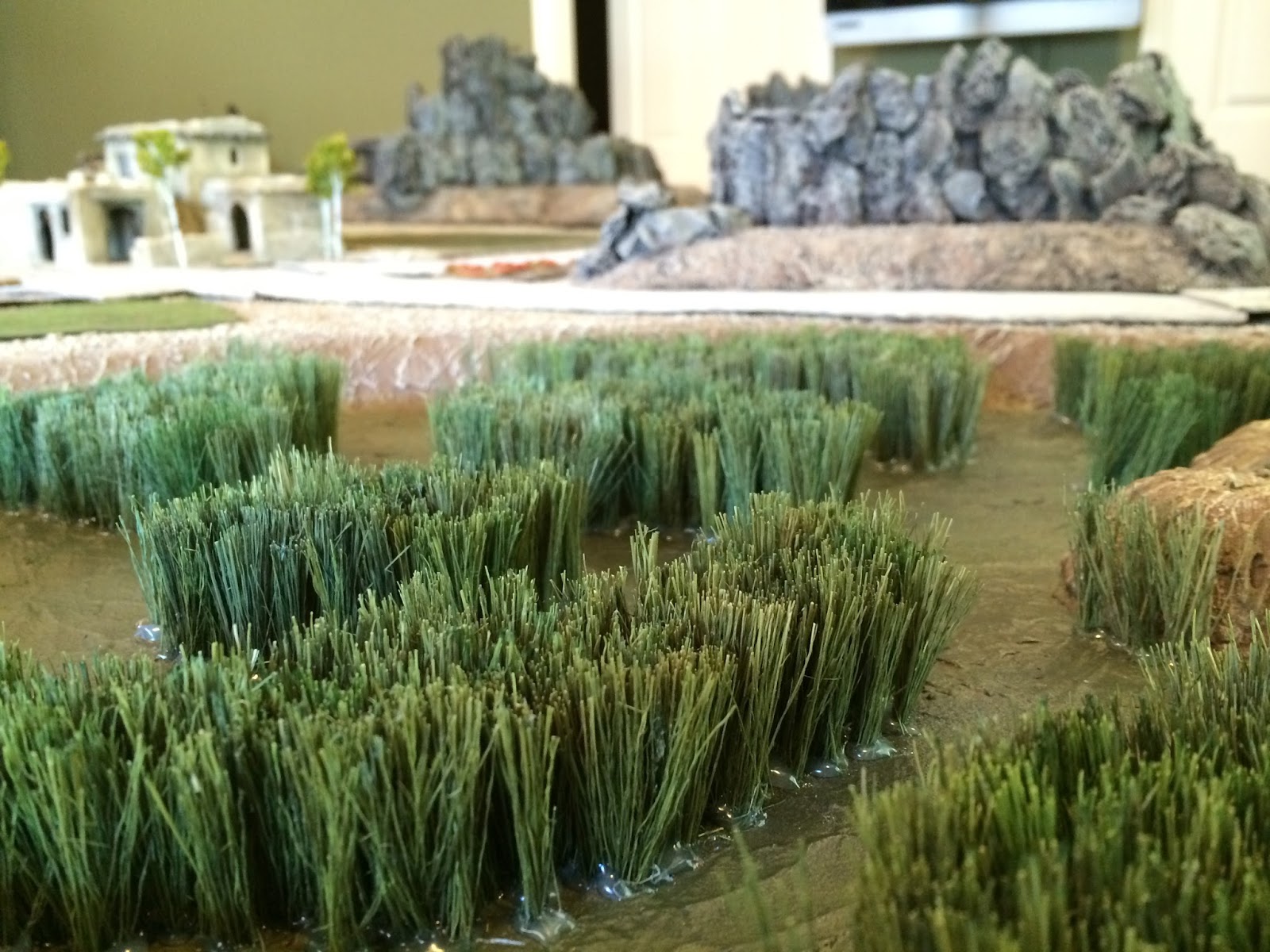 Lush crops of the Logar Valley, courtesy of a combo of latex caulk and carpet remnent fields…