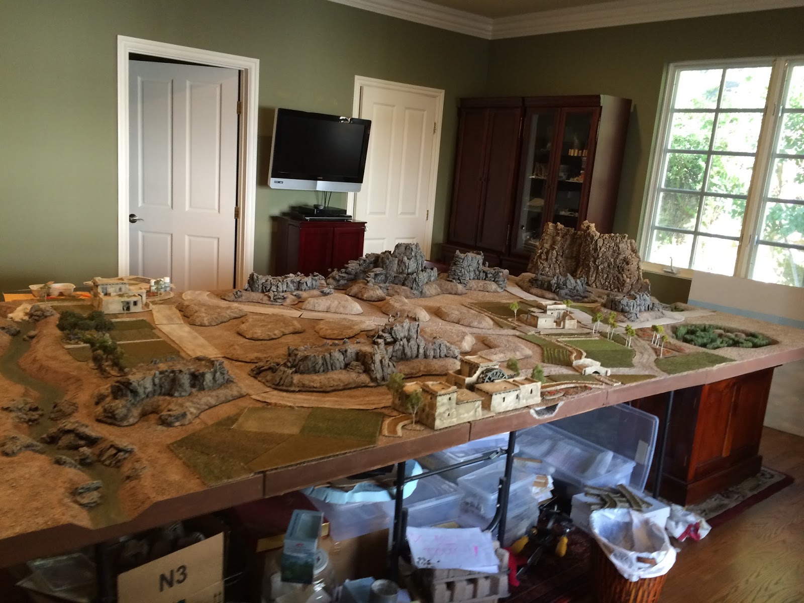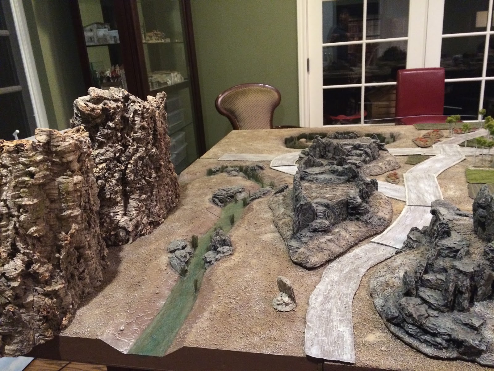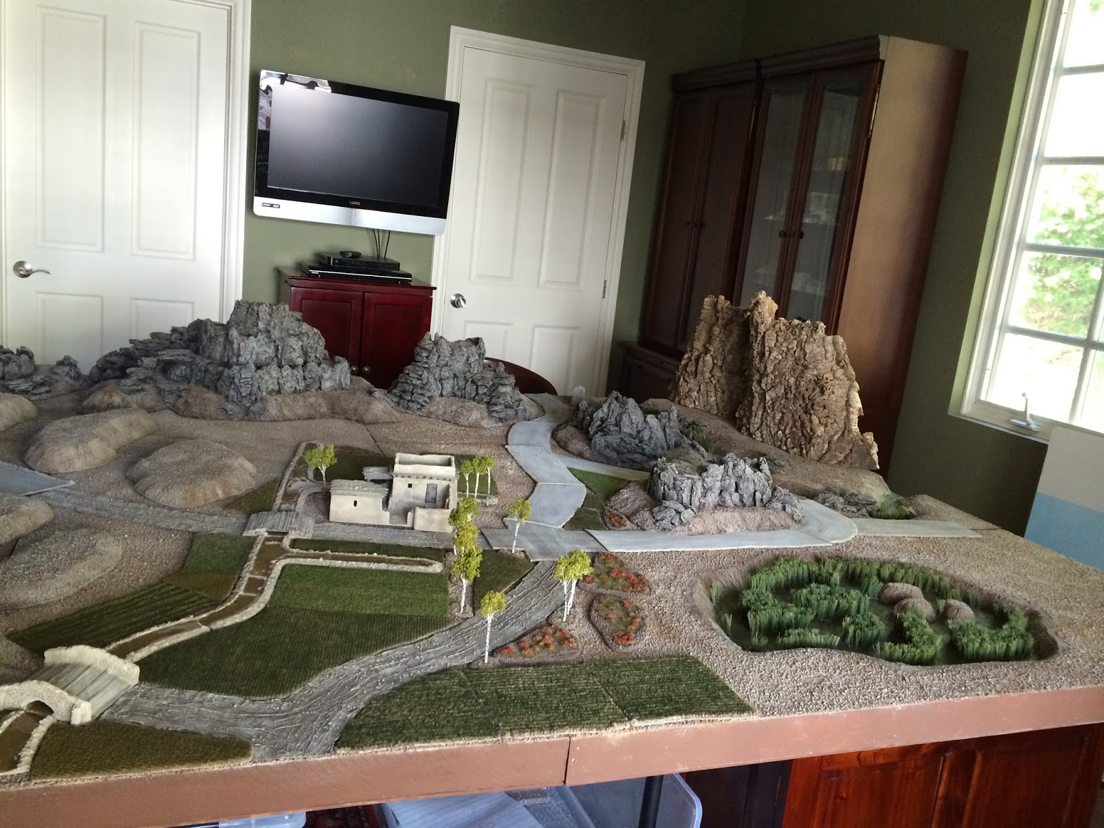 All that’s left for me to do now is replace about 20′ of my old 4″ wide craft foam road sections with new 3″ wide latex caulk ones, which I will start and hope to finish this coming weekend, and to pour several layers of resin into the Khairabad Swamp, Logar River and Kabul River, which I hope to finish up within the next month or so, say by end of July.