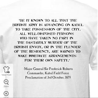 When I did my big “Maiwand Day” game, my friend Nick Stern — with help from his talented girlfriend, Joyce — created a commemorative t-shirt that looked great. This inspired me to do the same a few years later when I held a big game on the 150th anniversary of the Battle of Camerone, fought during the French Intervention in Mexico, the t-shirts for which also turned out nicely. So it’s only natural I felt compelled to create a similar t-shirt for the Charasiab game.