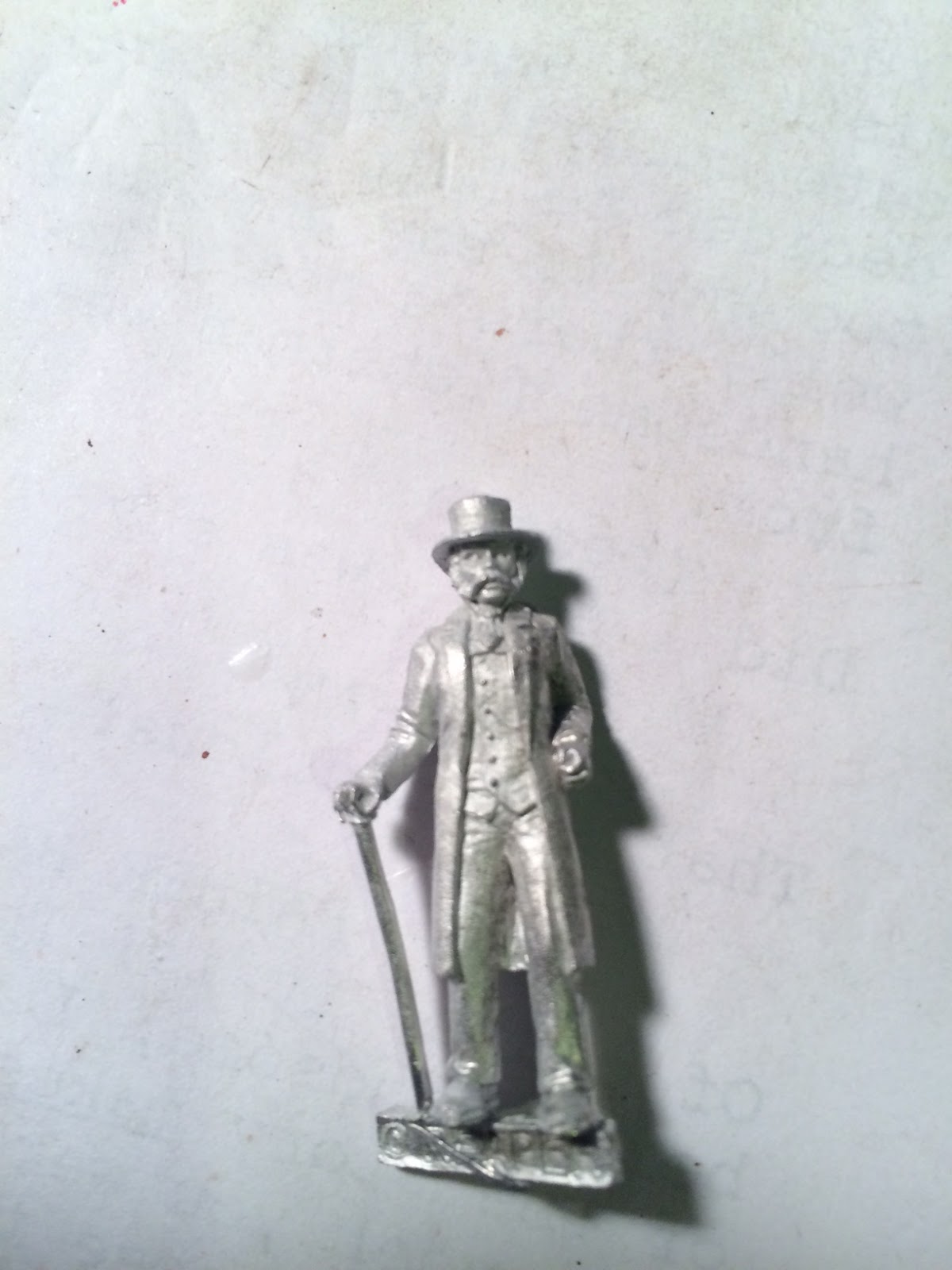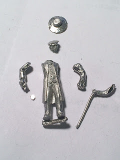 Here’s the final result, using the HAT from one figure, the HEAD from a second, the BODY and WALKING STICK from a third, and the ARMS from a fourth — with an additional bit of scratchbuilt pocket-watch added at the very end:
