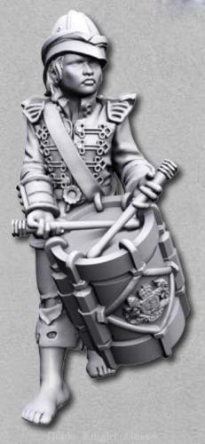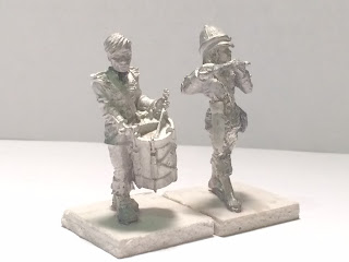 There was only one catch: in the story, and in the handful of visual artworks it’s inspired over the past hundred-plus years, one boy plays a drum and the other a fife. But the two “Britannia” boy musicians both come with drums. Hmmm. What to do, what to do. Of course, it would be simple enough to field two drummer-boys for a battle inspired by a story the name of which literally is, The DRUMS of the Fore and Aft, and yet… it seemed a bit lame to me. So I went and looked for 28mm fifers, who could perhaps provide a solution to my “instrument” problem. The “Dystopian Legions” drummer-boy figures are actually closer to 32mm in size, so I focused my search on larger 28mm fifers.