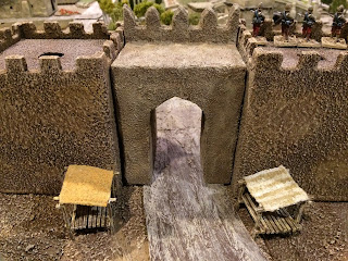 Slammed with work but just enough time to post a few pics of the completed Kohistan Gate for Kabul. Nothing fancy but I think it blends in pretty well with the pre-existing set of generic fortress walls, certainly a much better fit than the Medieval European version I was using as a placeholder…