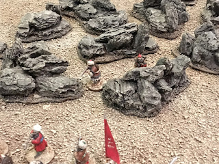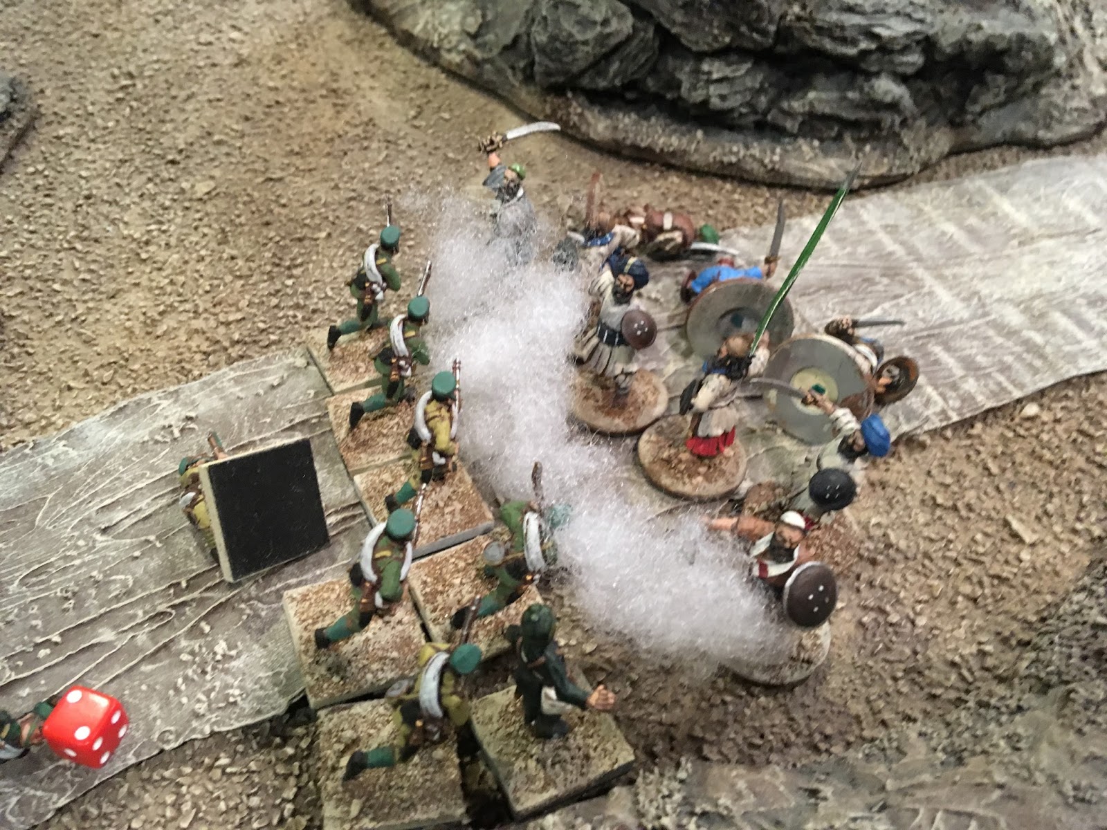 The Scout to the left discovered a full unit of 20 Pathans hidden in the rocks, half armed with rifles, half with sword-&-shield.