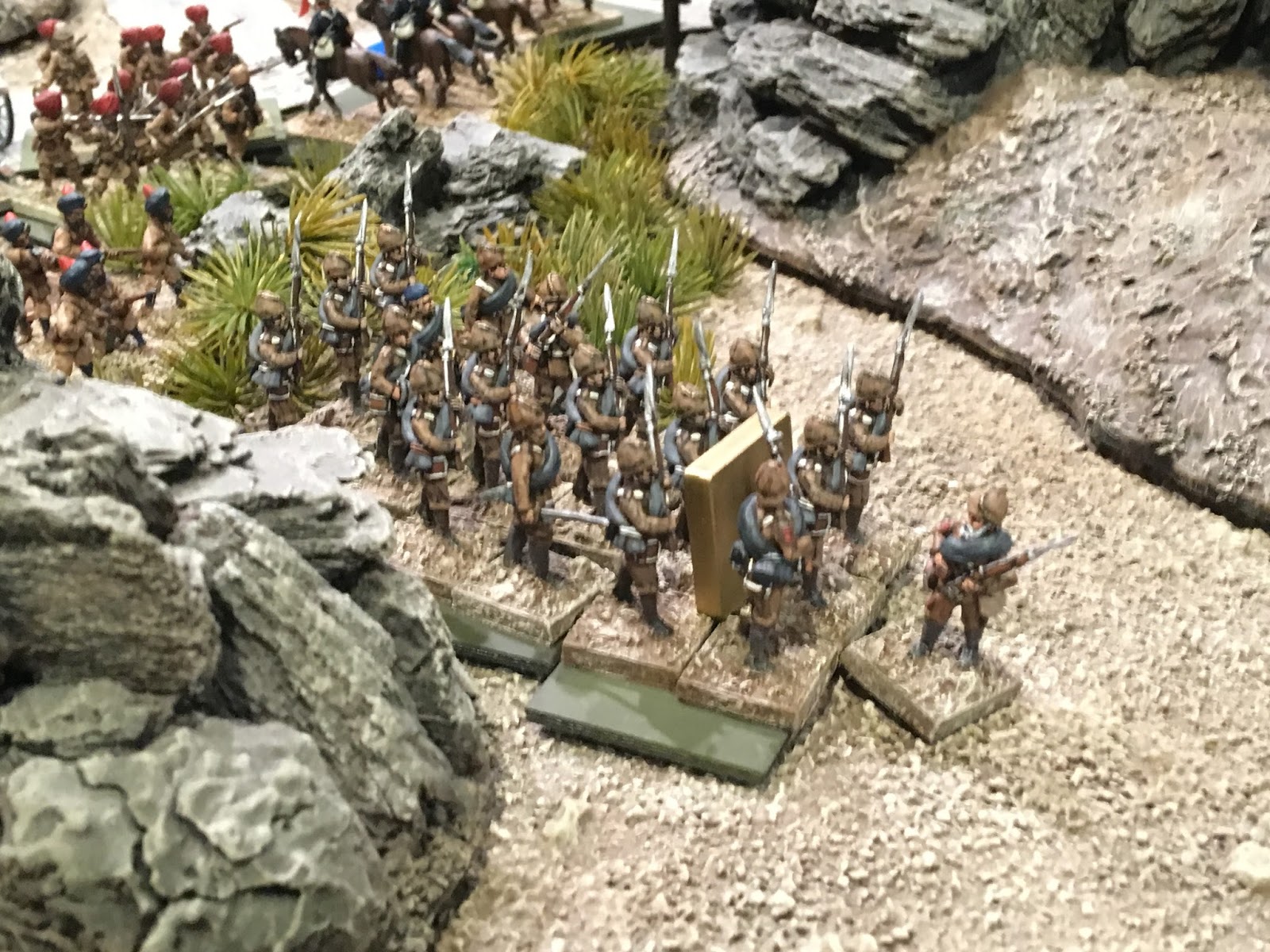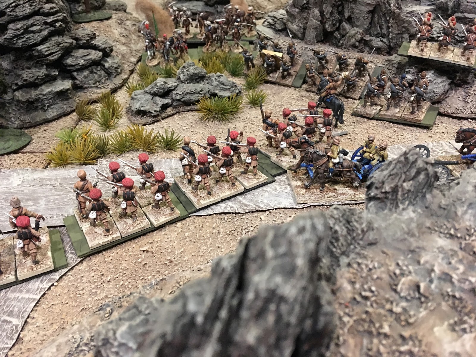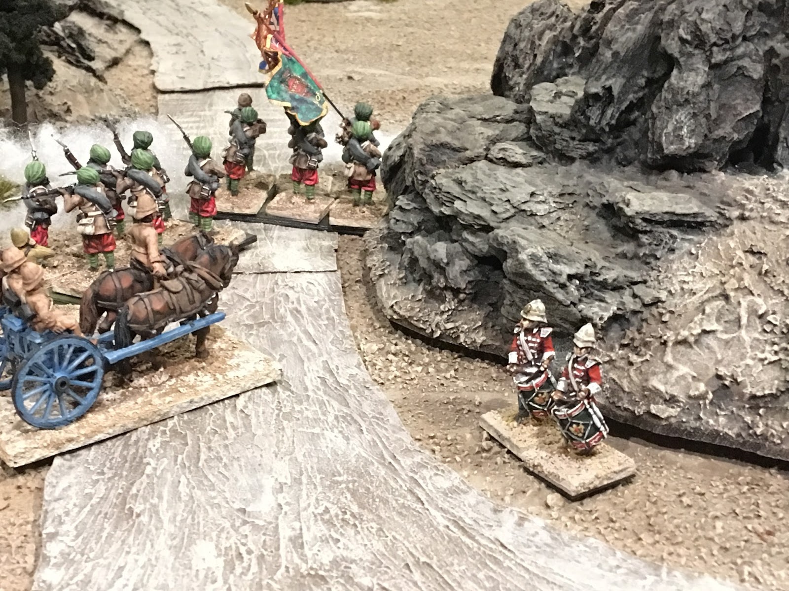 Meanwhile to the South, Jacob’s Rifles deploy into line, blocking the road North for a RA Field Gun and the Punjabis…