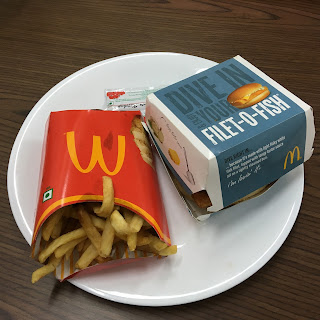 The Golden Arches stretch across even the land where cows are holy and eating beef is barely tolerated, and I can honestly report the Filet-O-Fish and fries (as well as the not pictured below chicken-wrap) are quite delectable…