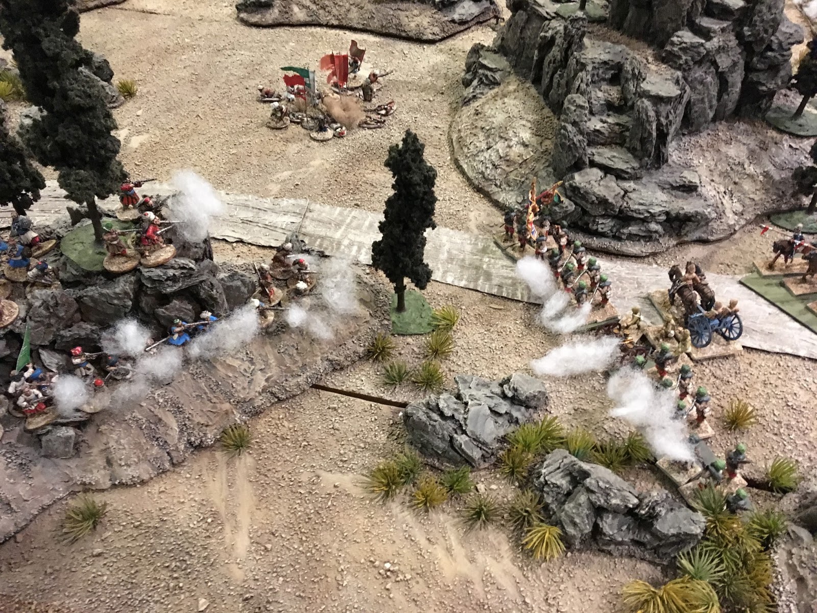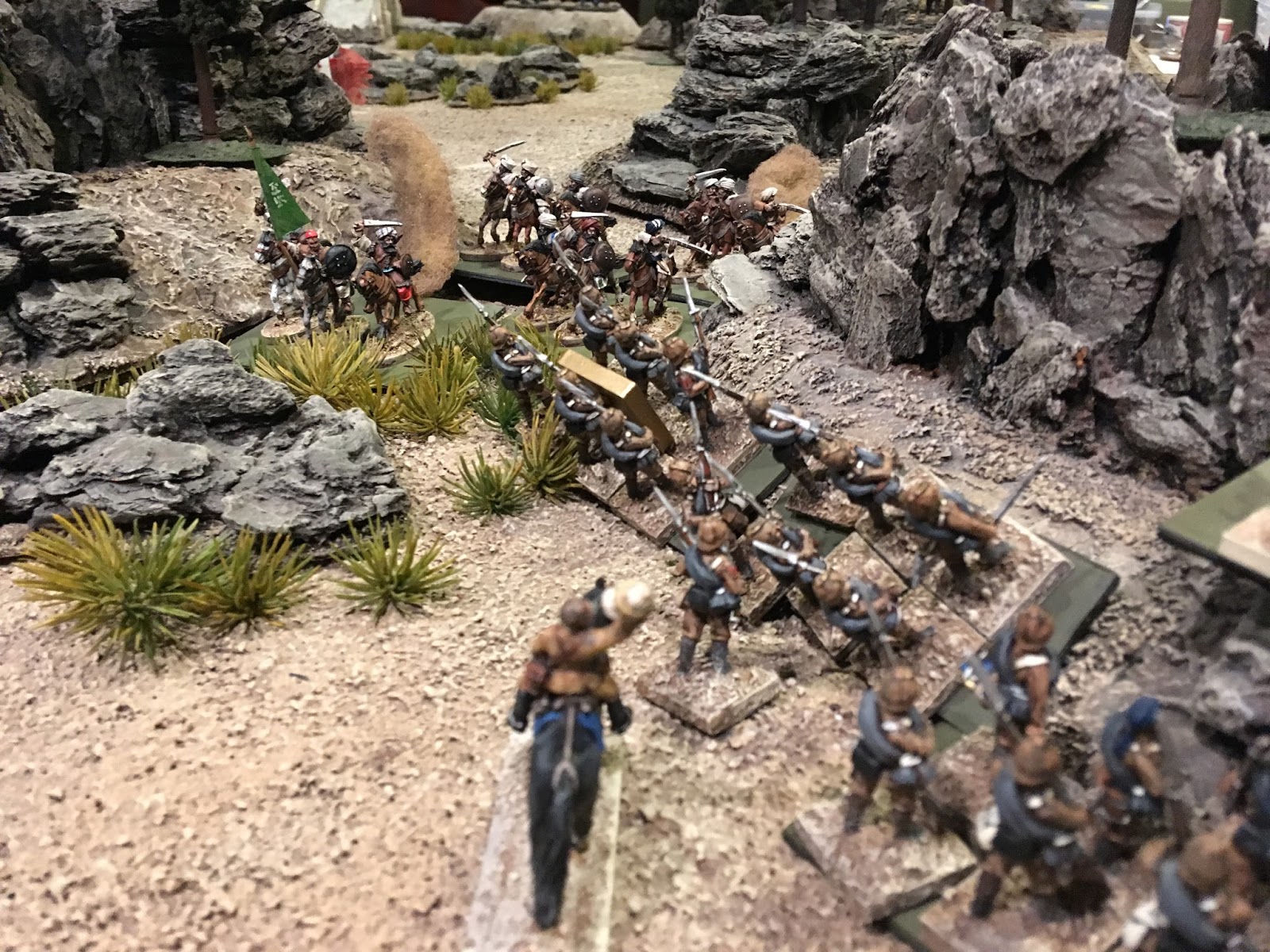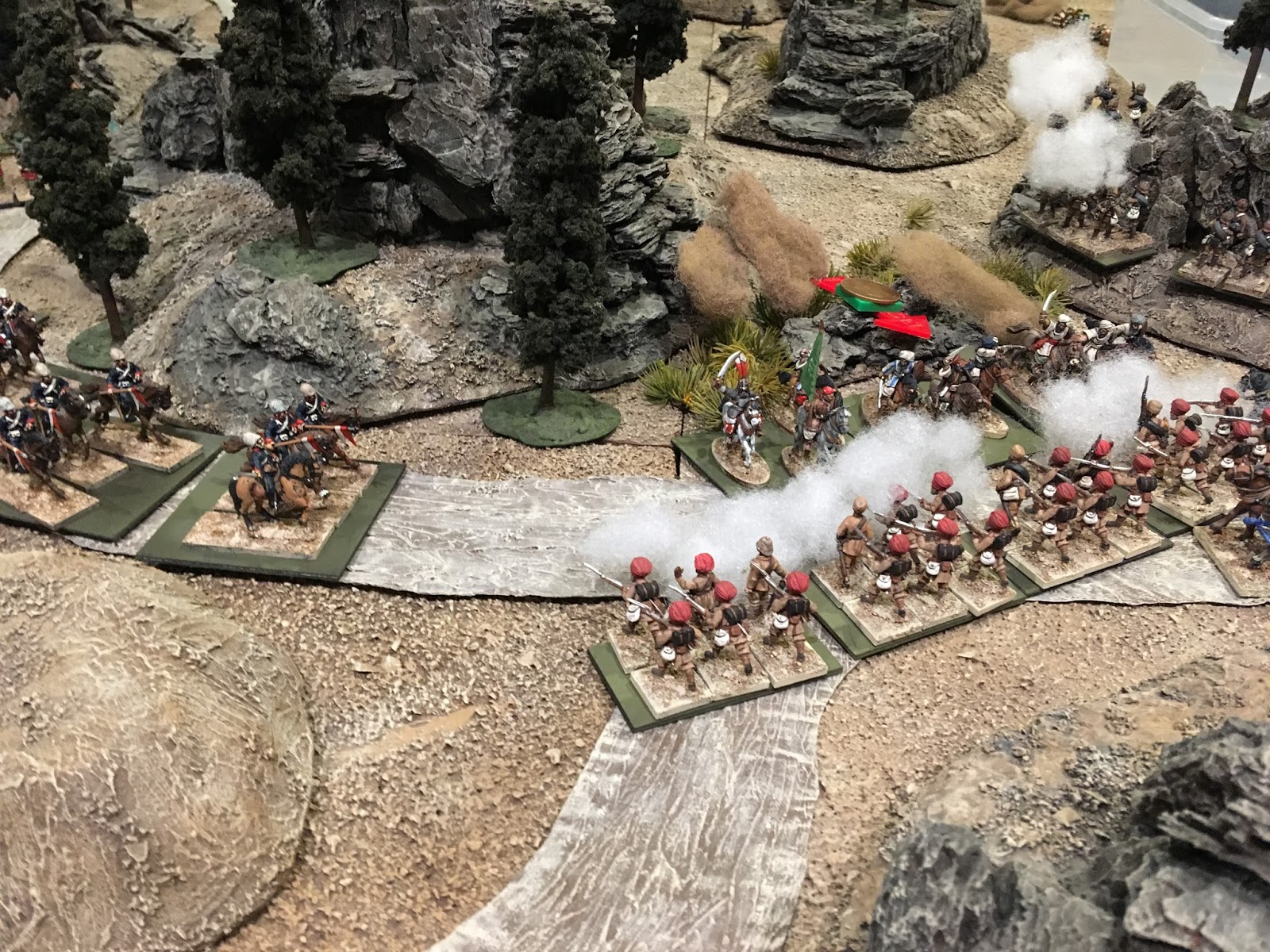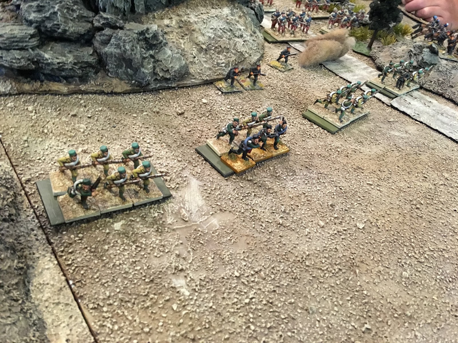 Back in the middle of the battlefield Jacob’s Rifles remain astride the road firing at the Tribesmen on the narrow rocky hill to their front while the Punjabis advance across the ridge to their left…