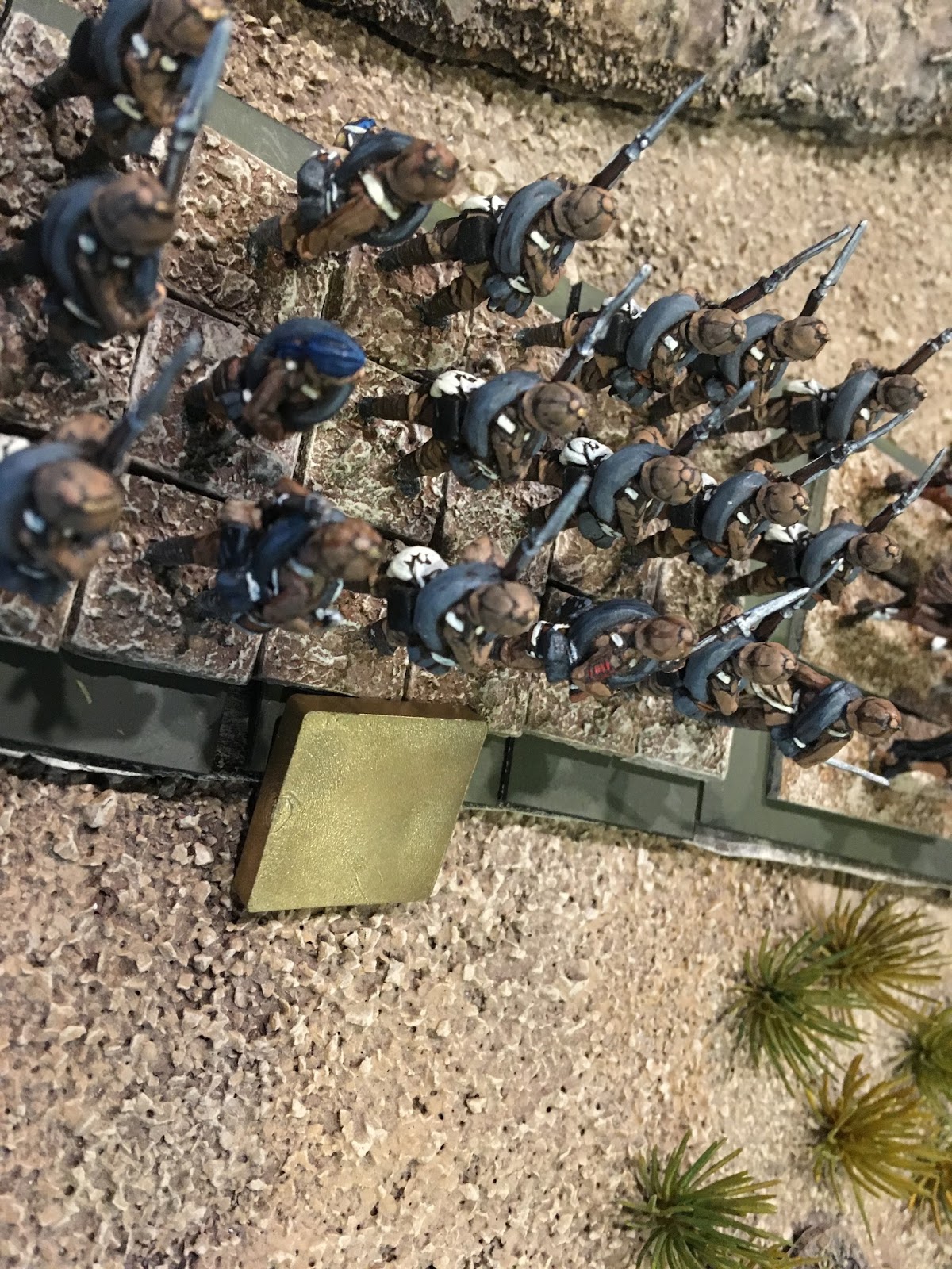 After defeated the Gurkhas in melee, Ghazi unit is marked with BLUE CHIP denoting their temporary status as “Blue in the Face”/winded…