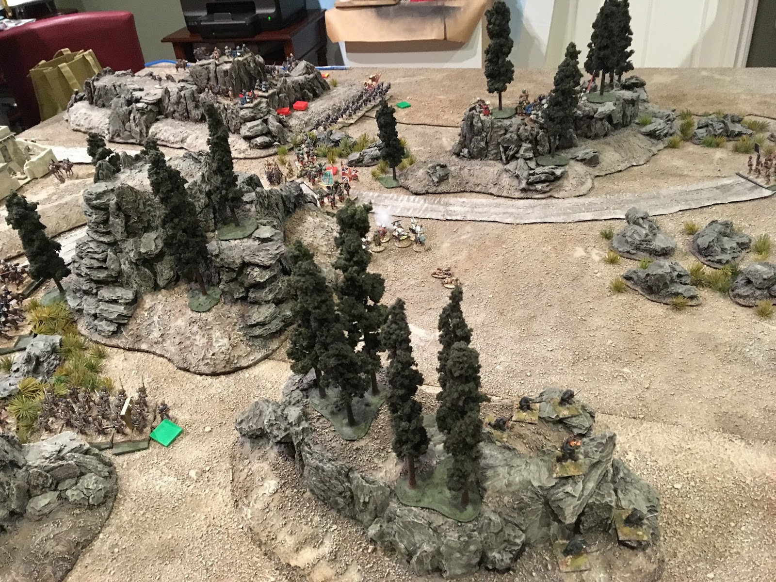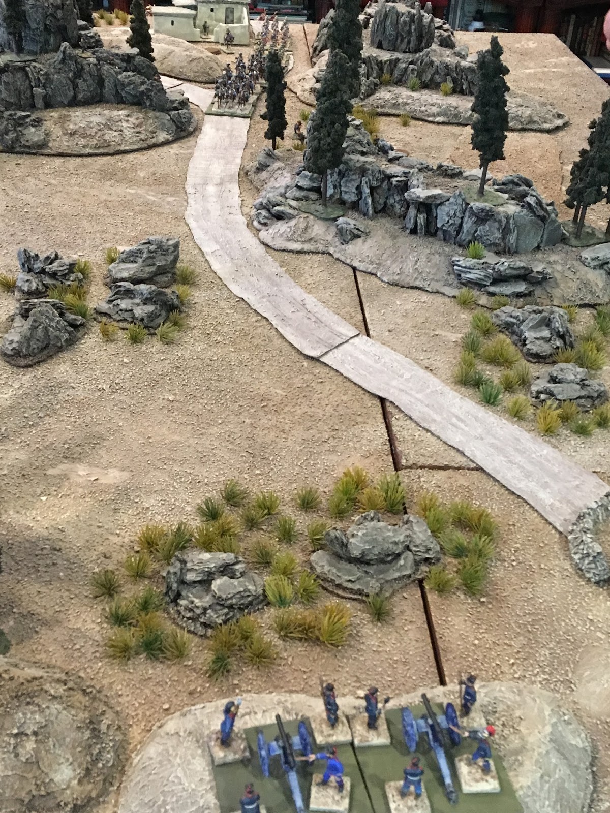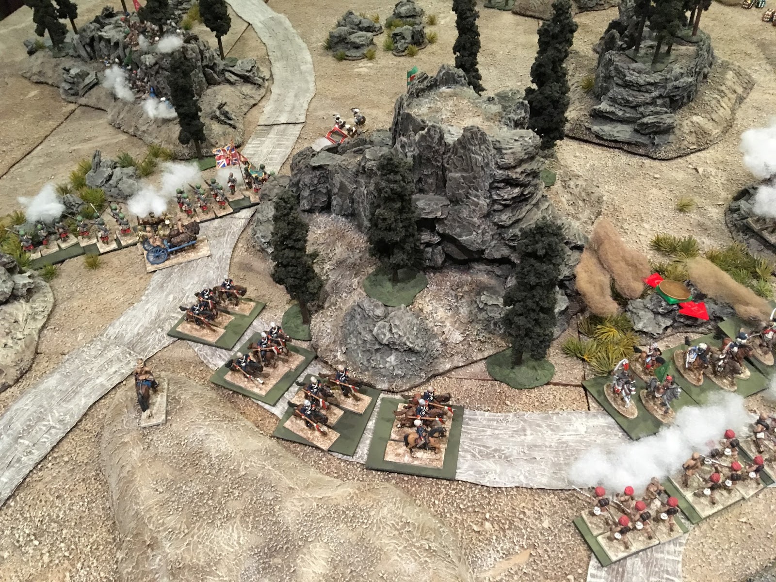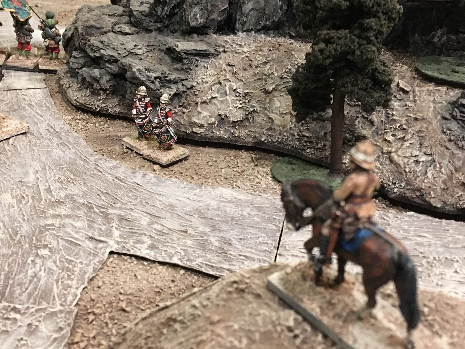 View farther North, showing 2 Tribal units on the Narrow Rocky Hill delaying the Anglo-Indian advance up the road…