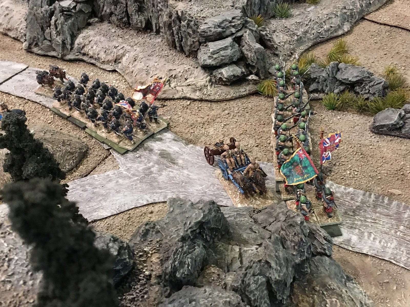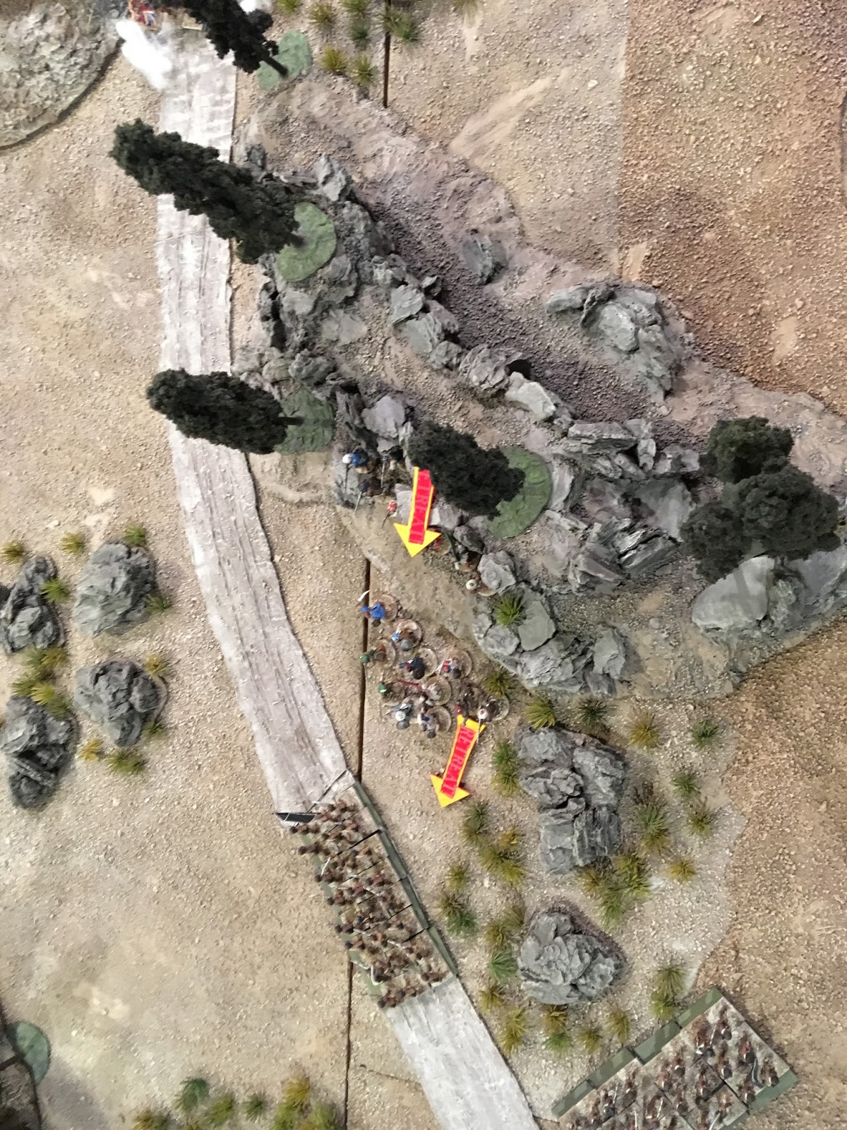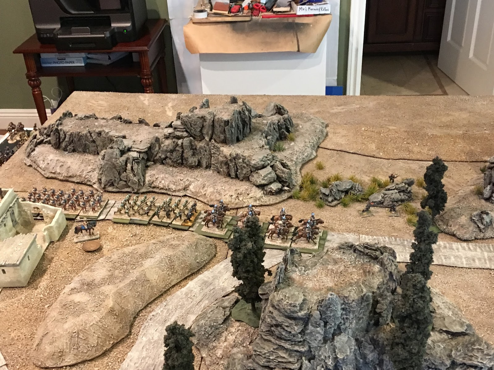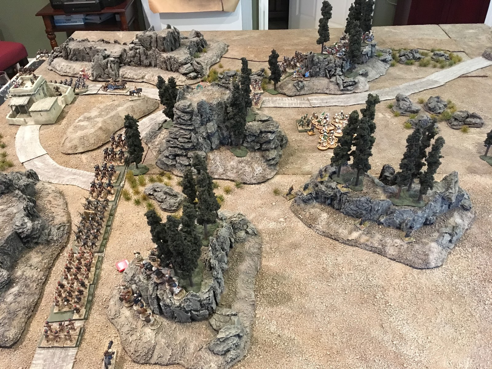 View farther North, showing 2 Tribal units on the Narrow Rocky Hill delaying the Anglo-Indian advance up the road…