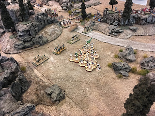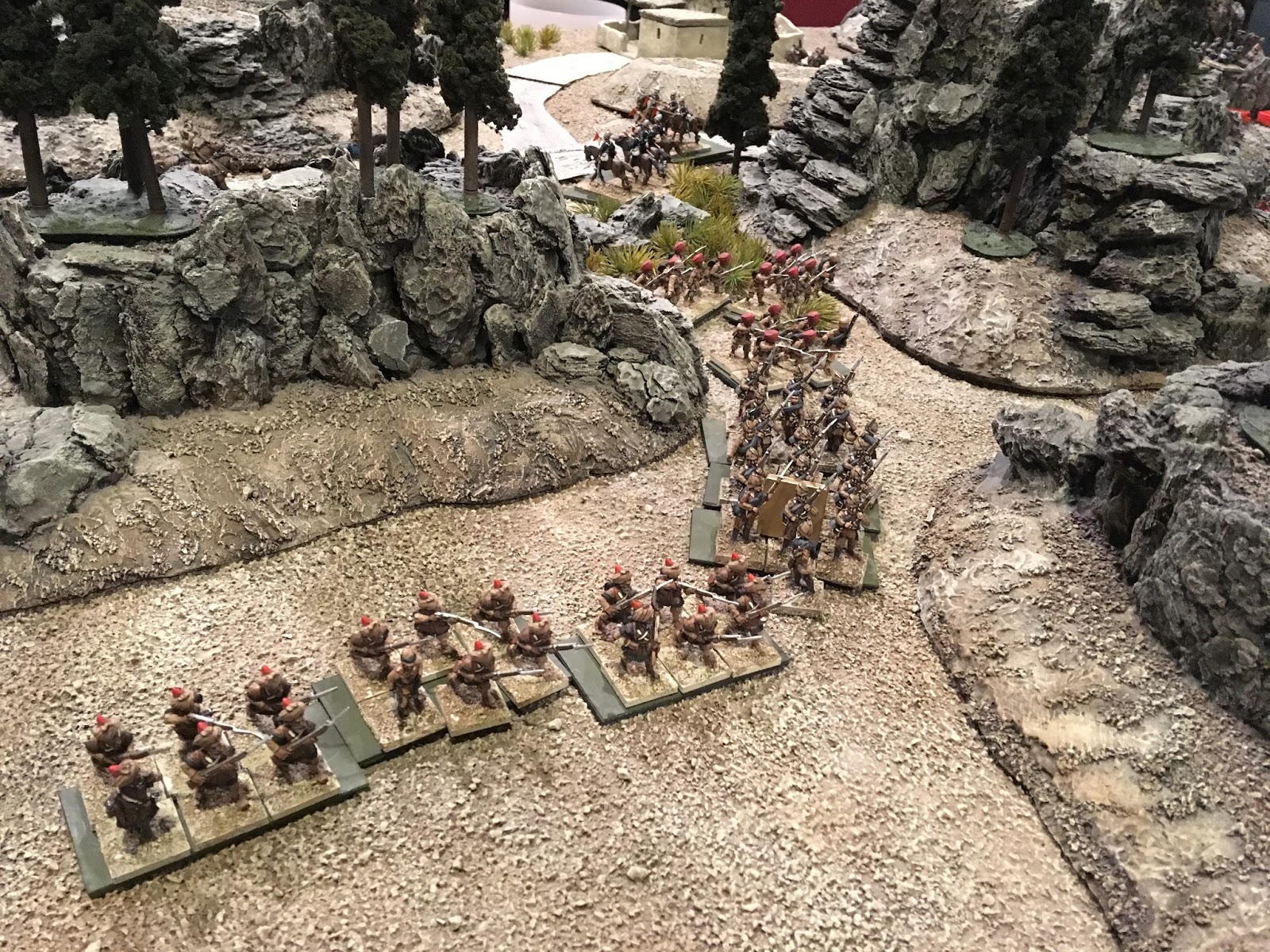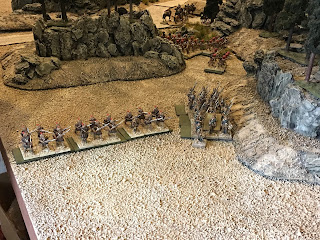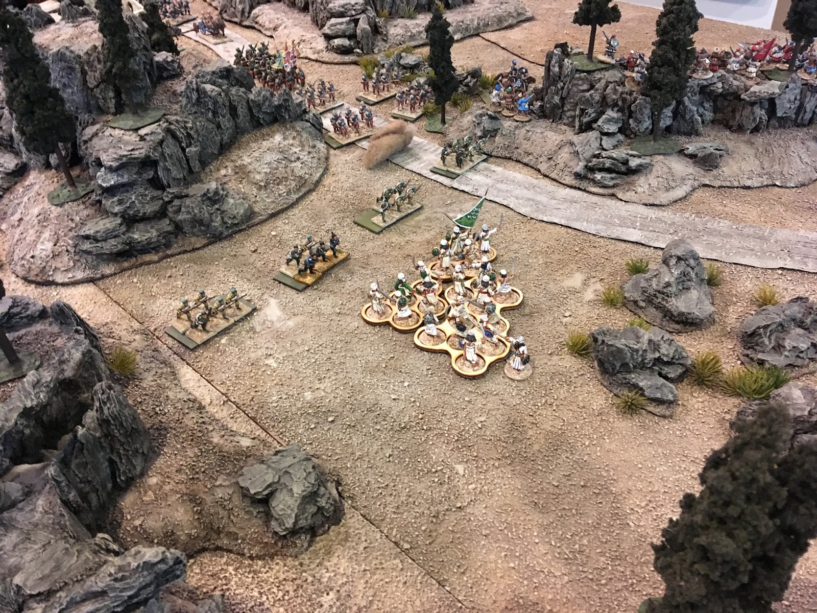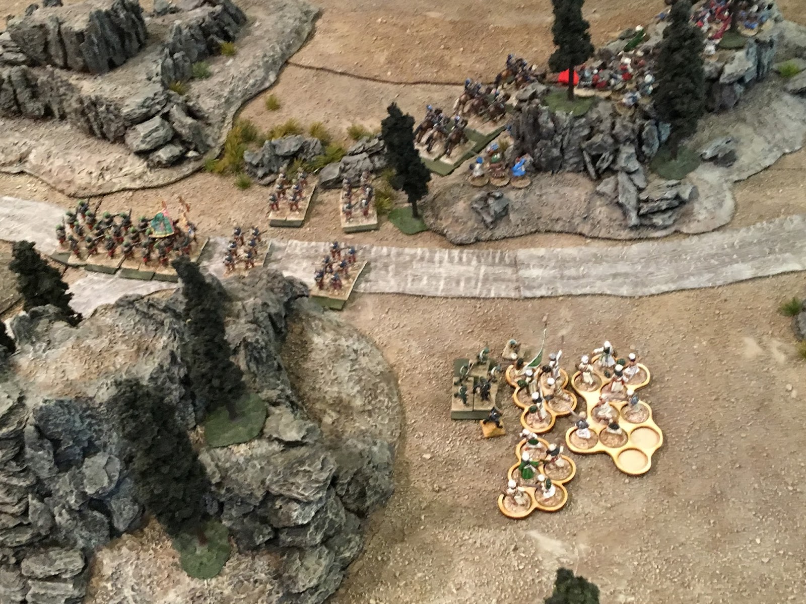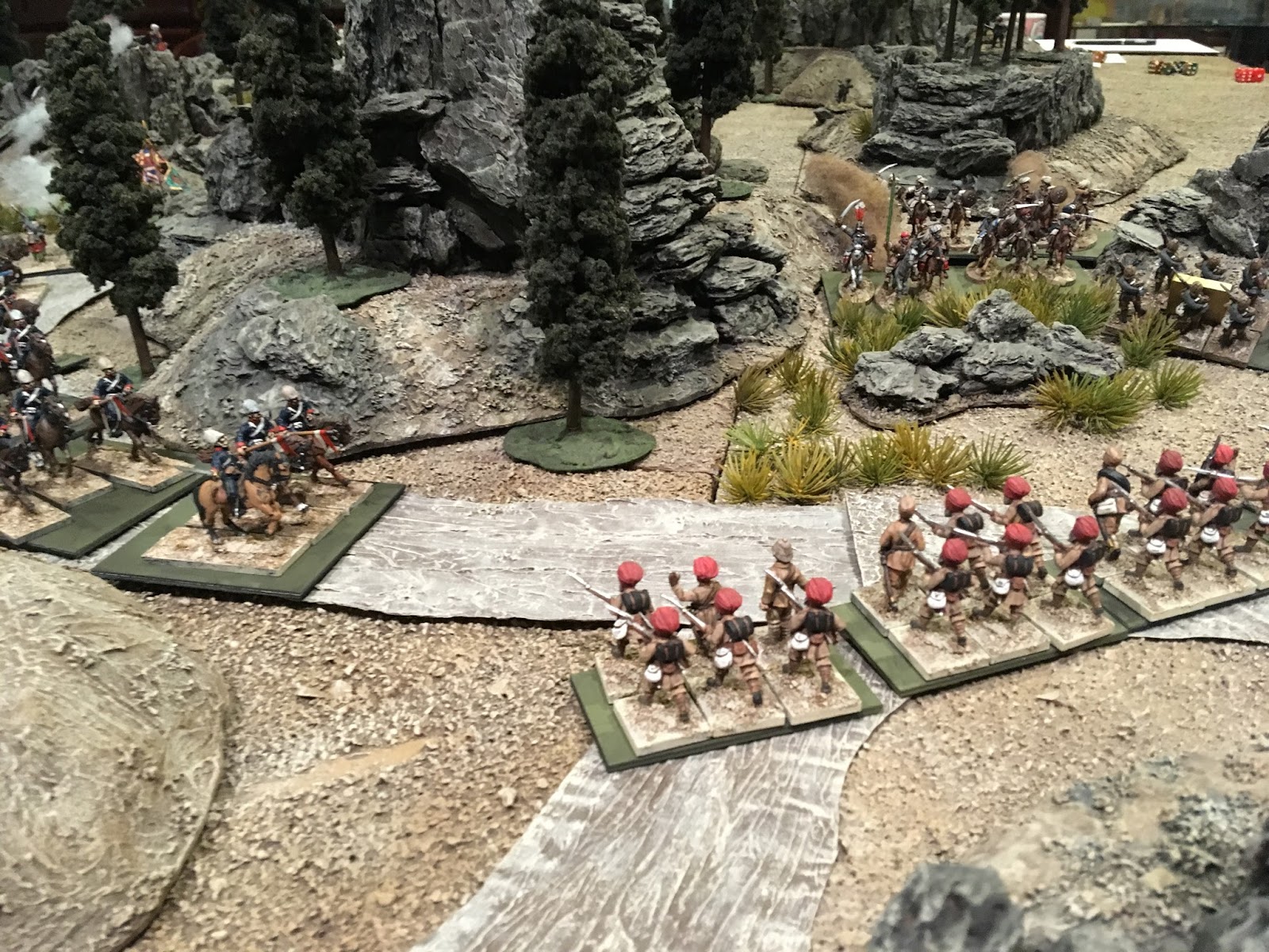 View farther North, showing 2 Tribal units on the Narrow Rocky Hill delaying the Anglo-Indian advance up the road…