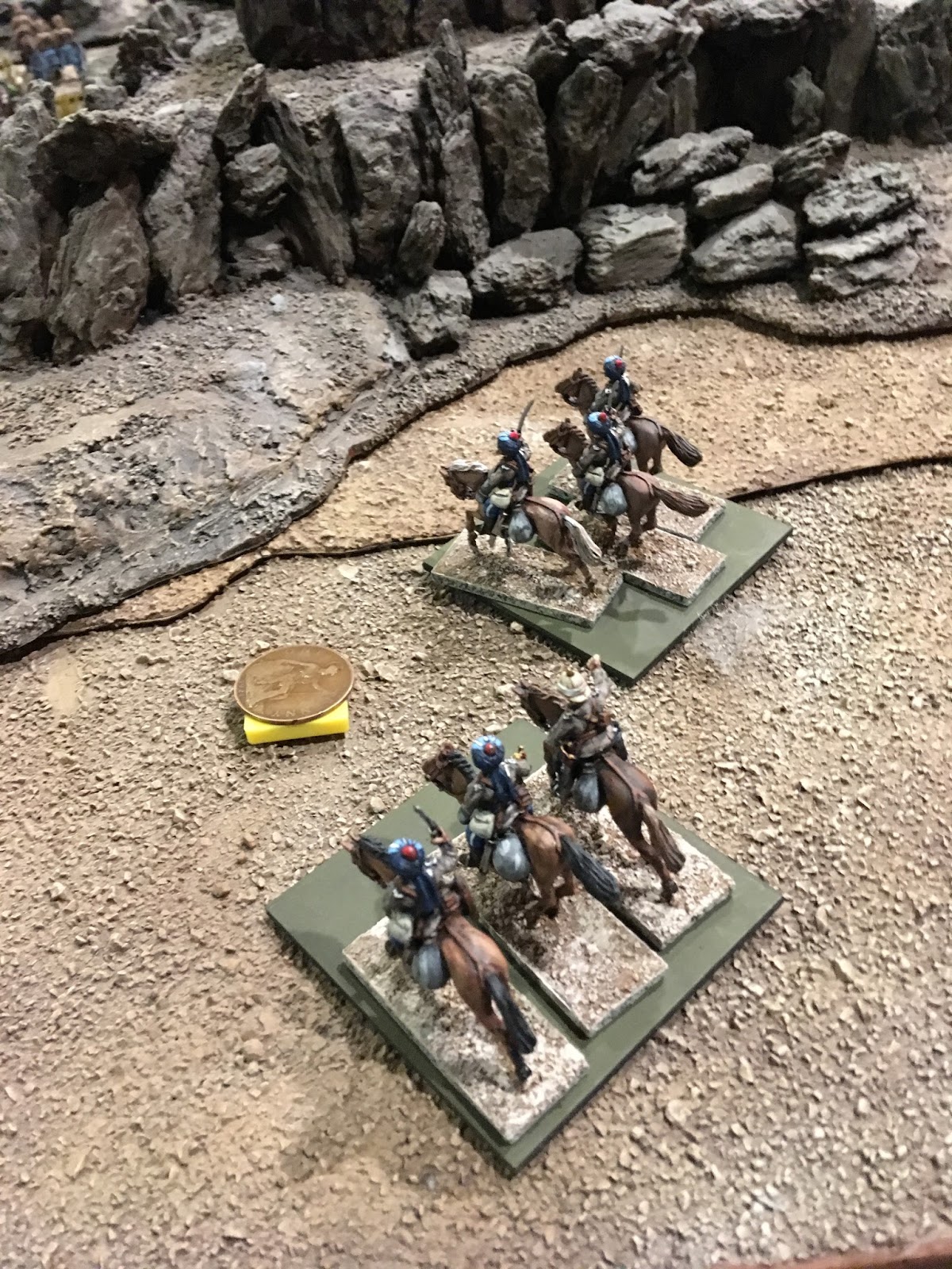 Punjai Cav skirt the road and use screen themselves from continuing artillery fire behind a rocky hill — from which they are ambushed by hidden Tribesmen…