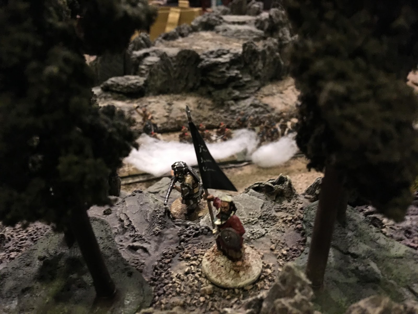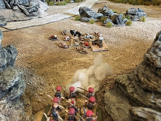 Remnants of both Tribal units from the narrow rocky hill fail morale