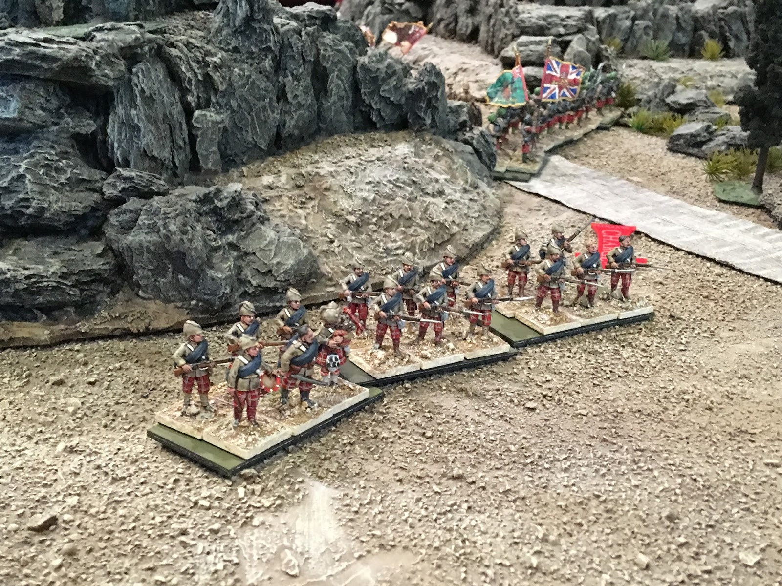 The British column heads North, Gurkha scouts in the lead on both sides of road and atop the heights…