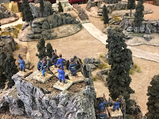 Across the table on the Eastern edge of the battlefield, Gurkha scouts proceed North to check the next rocky hill…