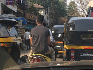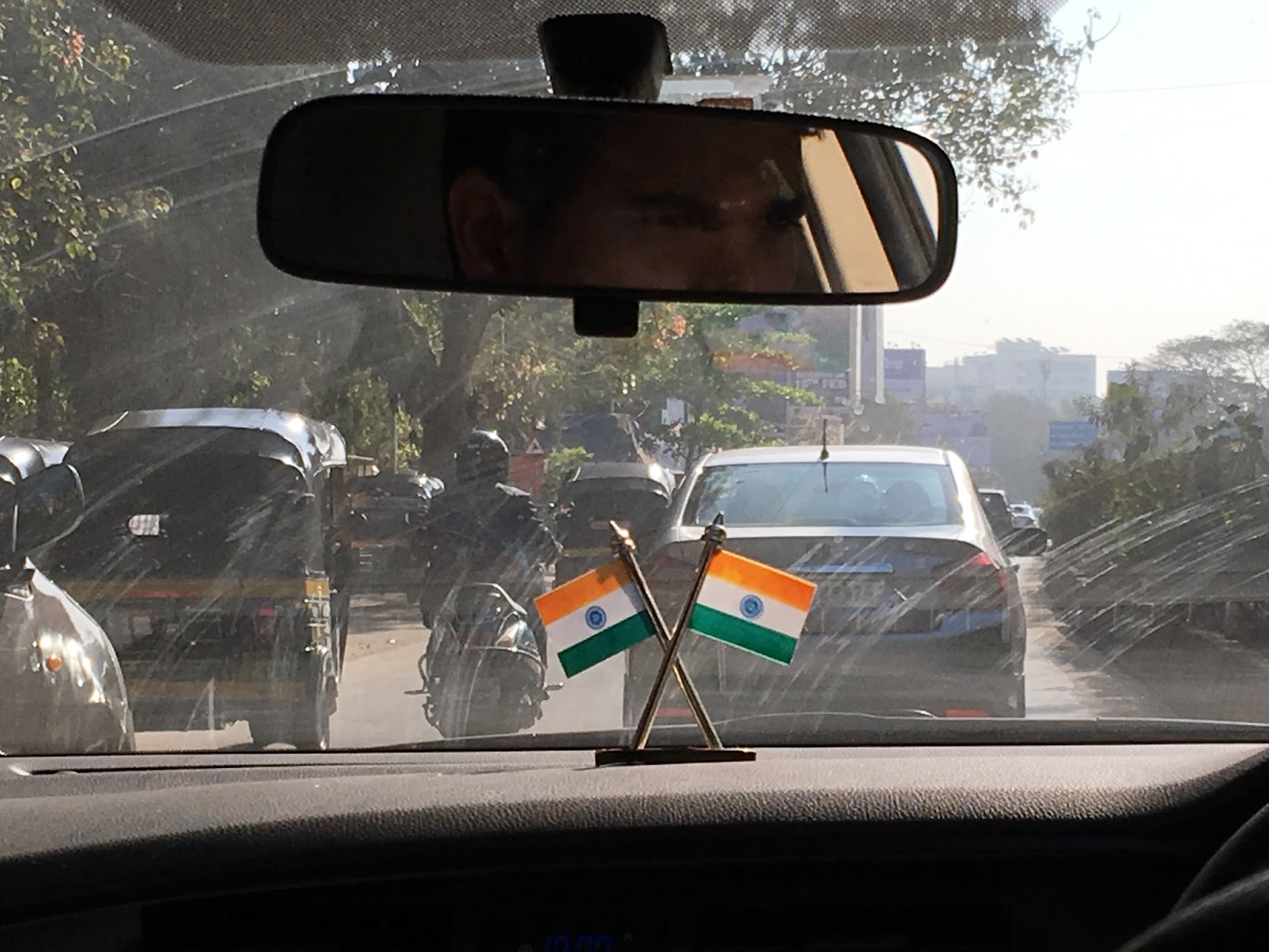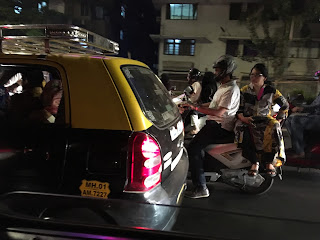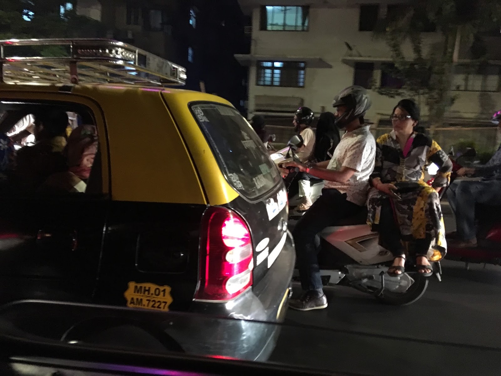 This pic may give you a slight sense of the nature of Mumbai traffic – there really are no “lanes” as such, it’s more like the constant flow of a school of fish — and no one stops at intersections, there it’s like the intermingling of multiple schools of fish heading in different directions. But the overall speed is a bit slow and the drivers all know what they’re doing and for the most part manage to make it work…