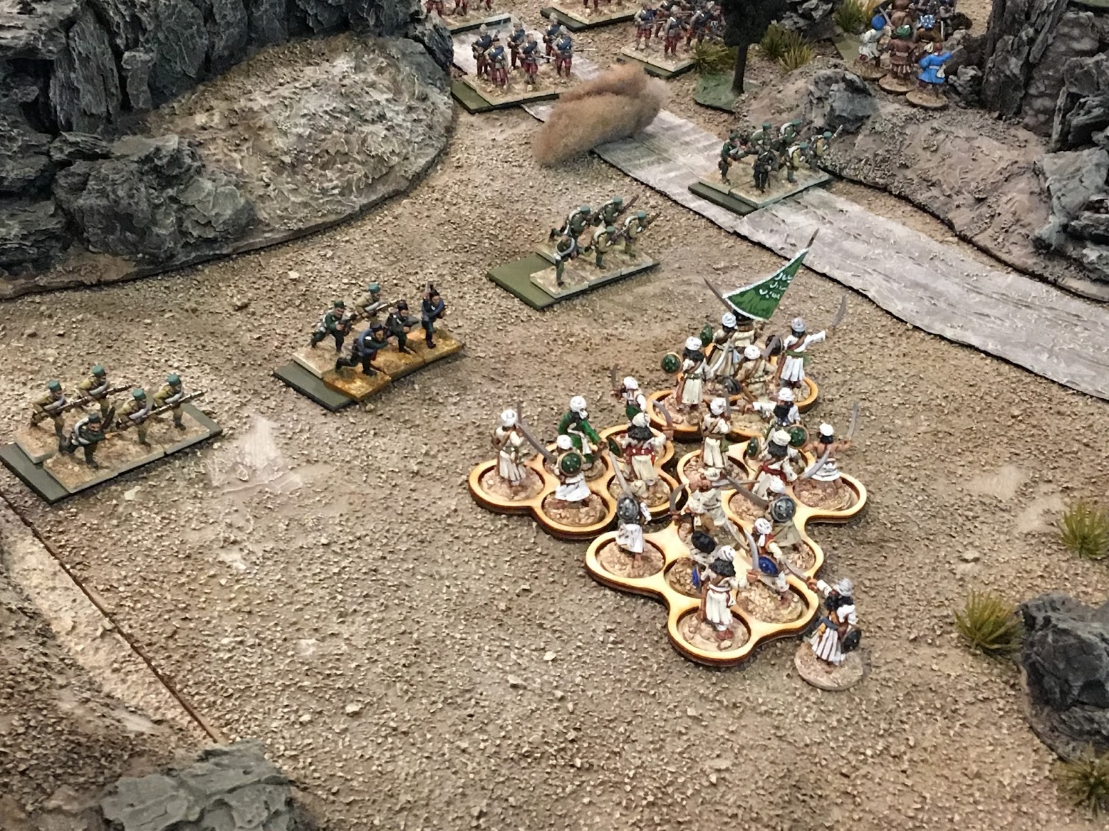 One unit of Tribesmen force a veritable full brigade of Anglo-Indians to turn and halt their advance, turn and engage them along the road…