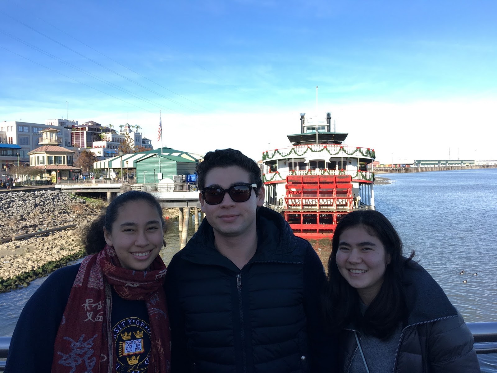 Sarah (15), Skylar (21) and Izzy (17) with Mississippi River,