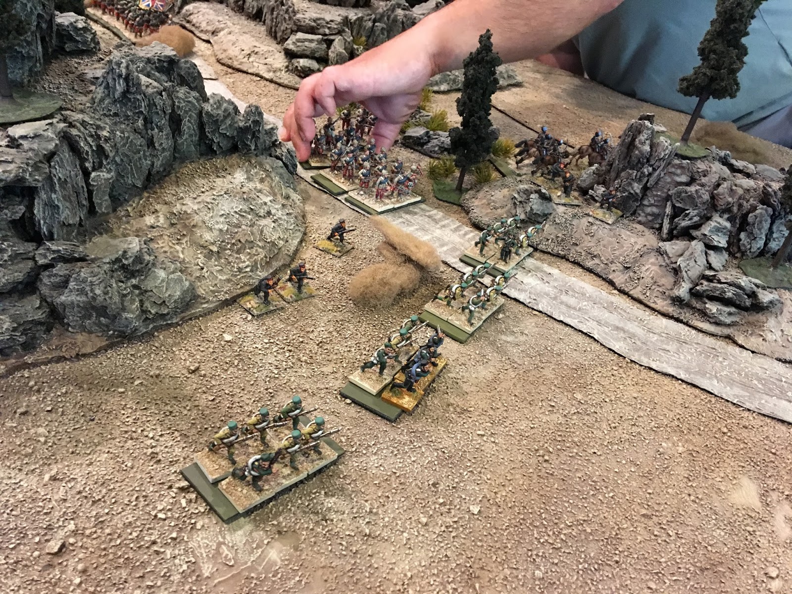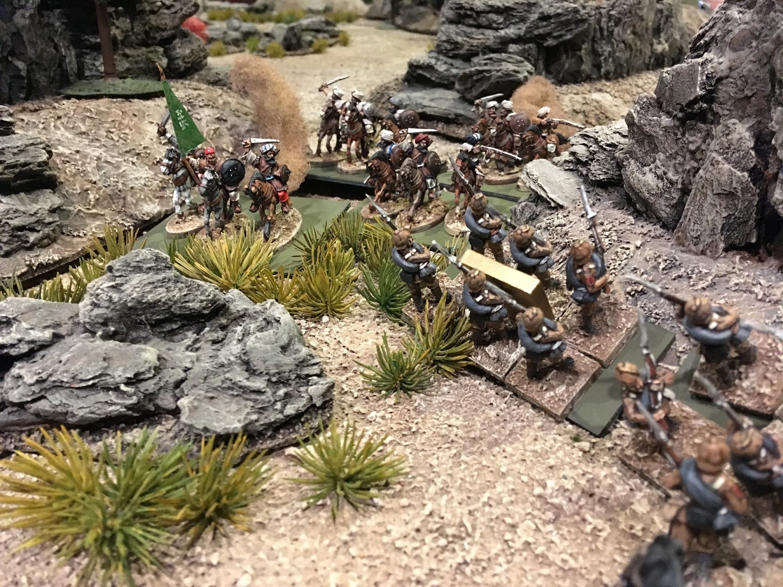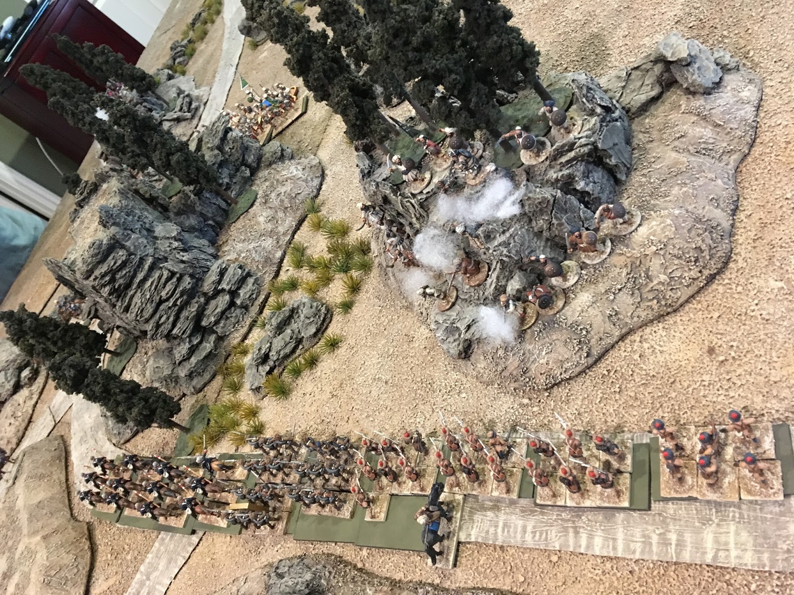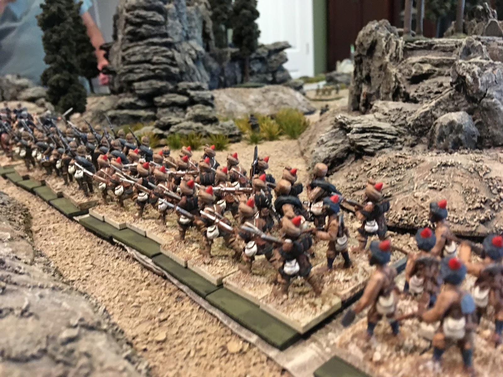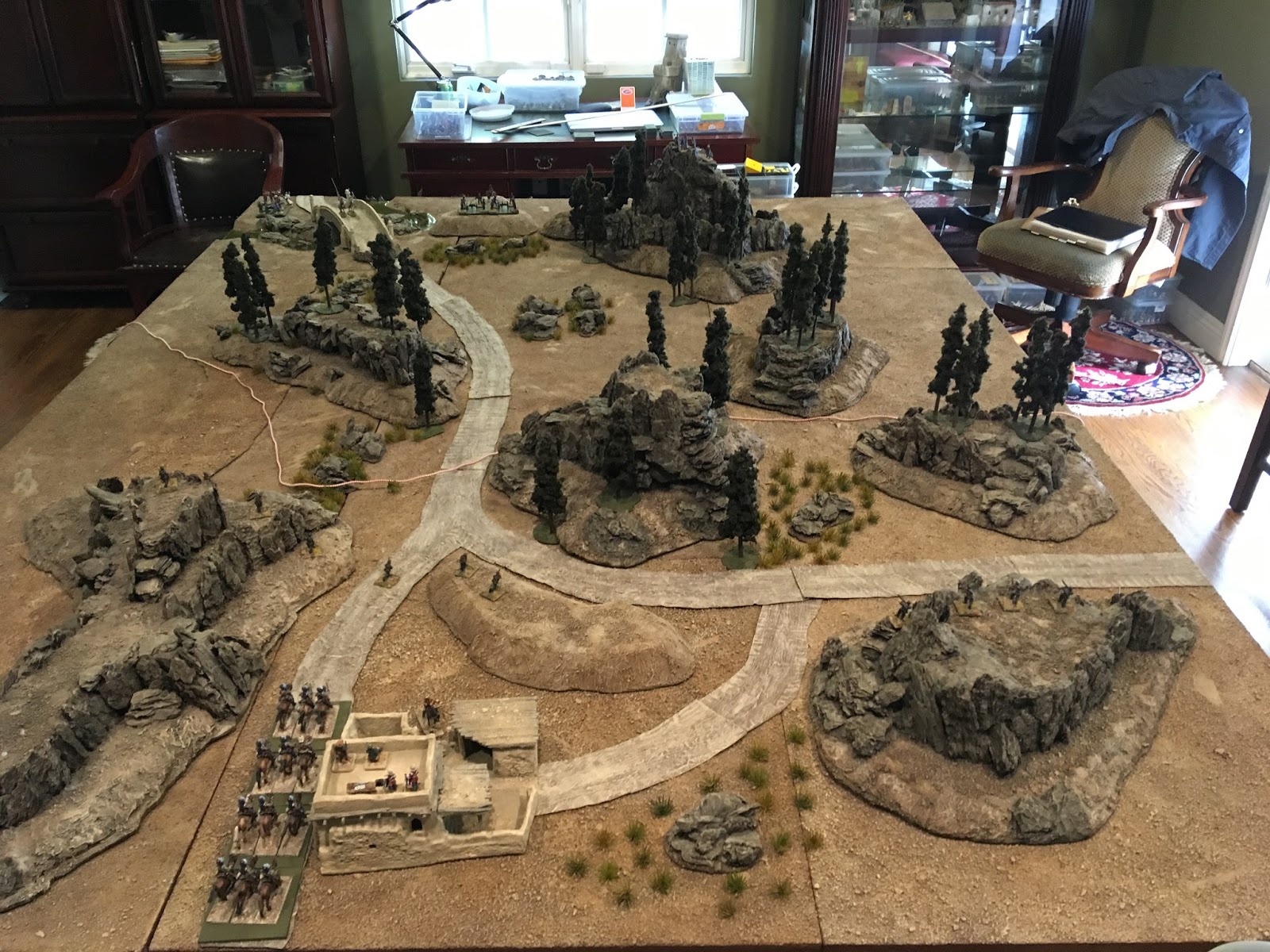 I started writing this post back on December 9th, 2017, about a game I’d set up and played with my buddy JG Randall from down in Orange County who visited LA and as a favor to me brought along his own set of rules — FIRE & MANEUVER — which I have found do a great job with Horse & Musket period games such as ACW, and which both of us had been wanting to try out for a Second Afghan War game for some time (JG has used them in the past with great success for epic size Sudan games).