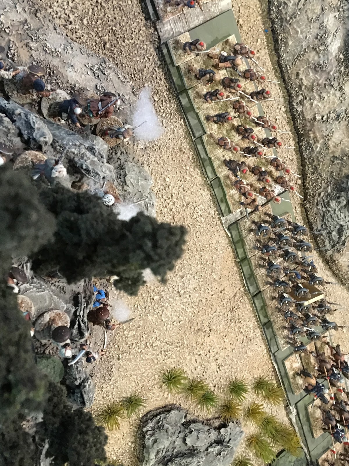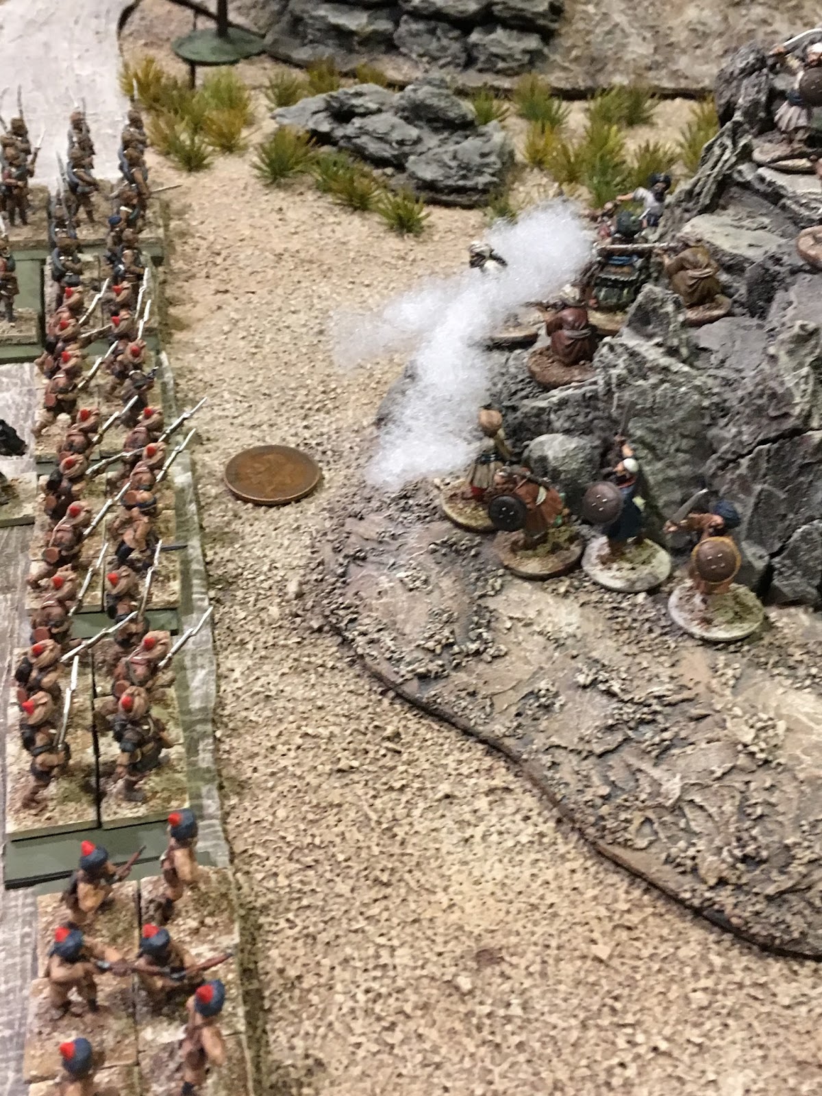 …and proceed to open fire on the Tribesmen still occupying the narow rocky hill to the North…