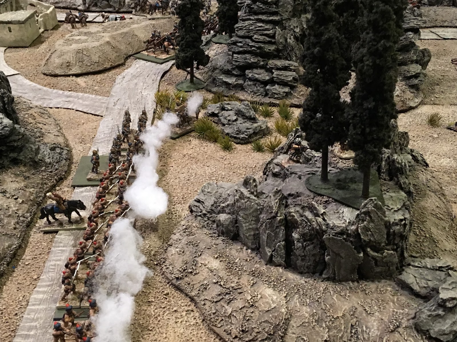 Guides Infantry followed by Yorks & Lancs (with their “Golden Ticket”) and Sikhs head North through the three-cornered pass…