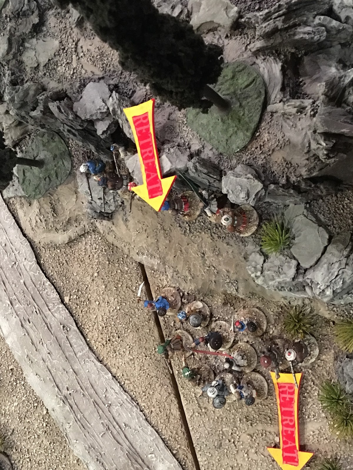 The “RETREAT” markers show the path of the routing Tribesmen is about