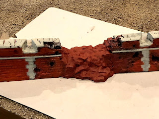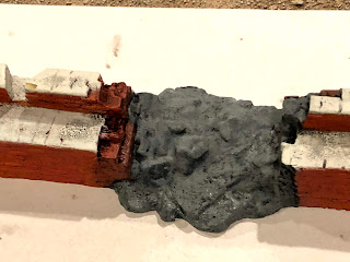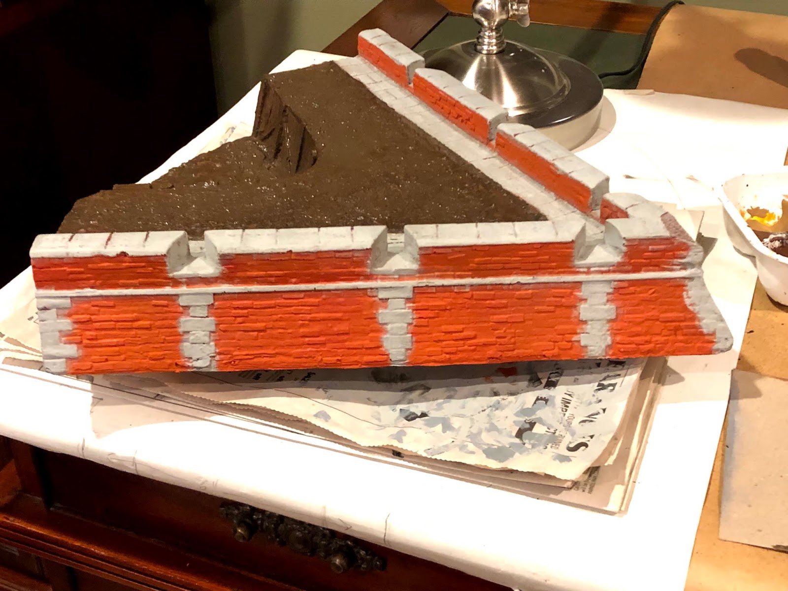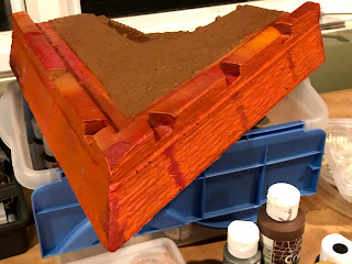 Following the same approach I used on the earthen ramps, I did a solid coat of my darkest shade of brown: Delta Ceramcoat WALNUT…