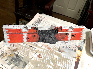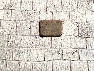 Using a small brush to touch-up spots where the stonework paint had gotten INTO THE RED…