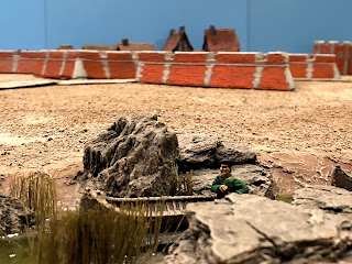The more I studied the photos and the actual breached wall section, the more I began to realize that the problem I’d been having was not so much about the various paint schemes I’d been trying out, as it was about the form of the rubble area itself.  The more I compared the photos from 1989 to the model on my table, the more I became convinced that the mold it was made from had been worn down by years of use, which had turned the rubble area less distinct to the point of being a bit of a muddle.