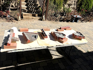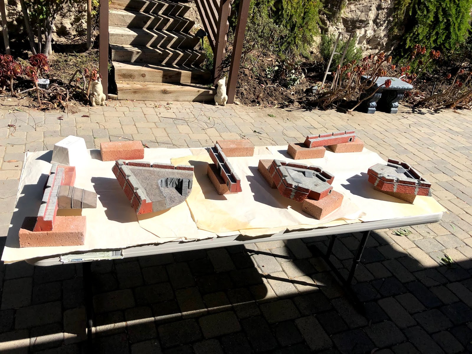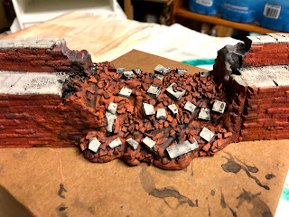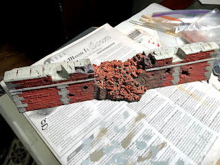 Then it hit me: I could deal with this problem head-on, by adding some more distinct shapes of my own.  After all, the wall had been built from lots of bricks and/or cut stones.  In roughly 28mm scale, those would not be hard to find!