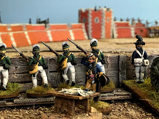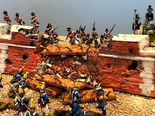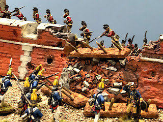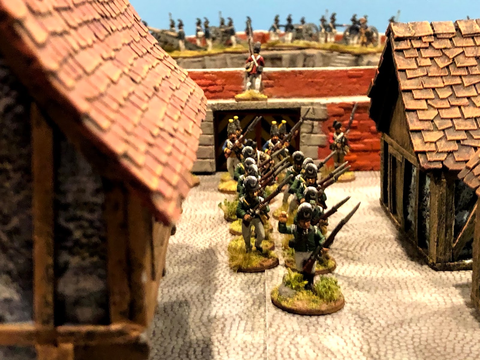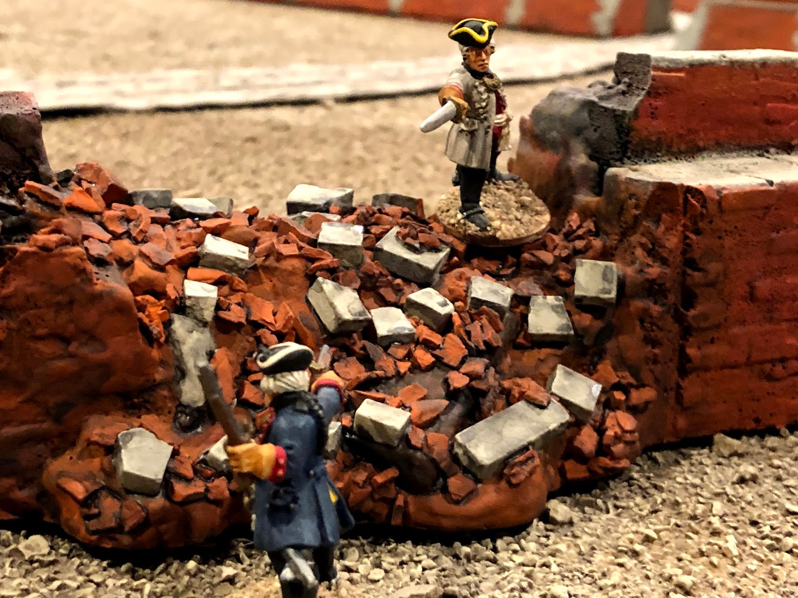 2 of my 3 SYW officers face off across the BREECHED WALL SECTION, which I finally felt good about…