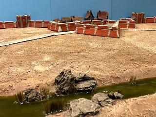 Looking more at the photo of the damaged wall section, I was finally able to ID what some of the shapes in the rubble area were meant to be, such as an intact large oblong stone from the rampart that had collapsed.