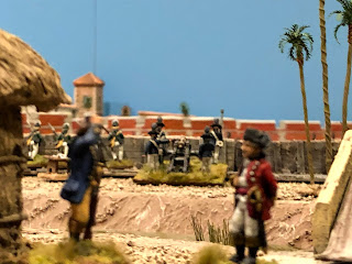 BUT WAIT — HOLD THE POSTAL PRESSES, and shipping containers.  I can’t send this thing away without at least taking a few more photos of the finished fortress in all its Age of Enlightenment glory!  In addition to my old school Old Glory F&IW armies, over the last couple of years I have gathered a small collection of AWI figures, who now came in very handy…