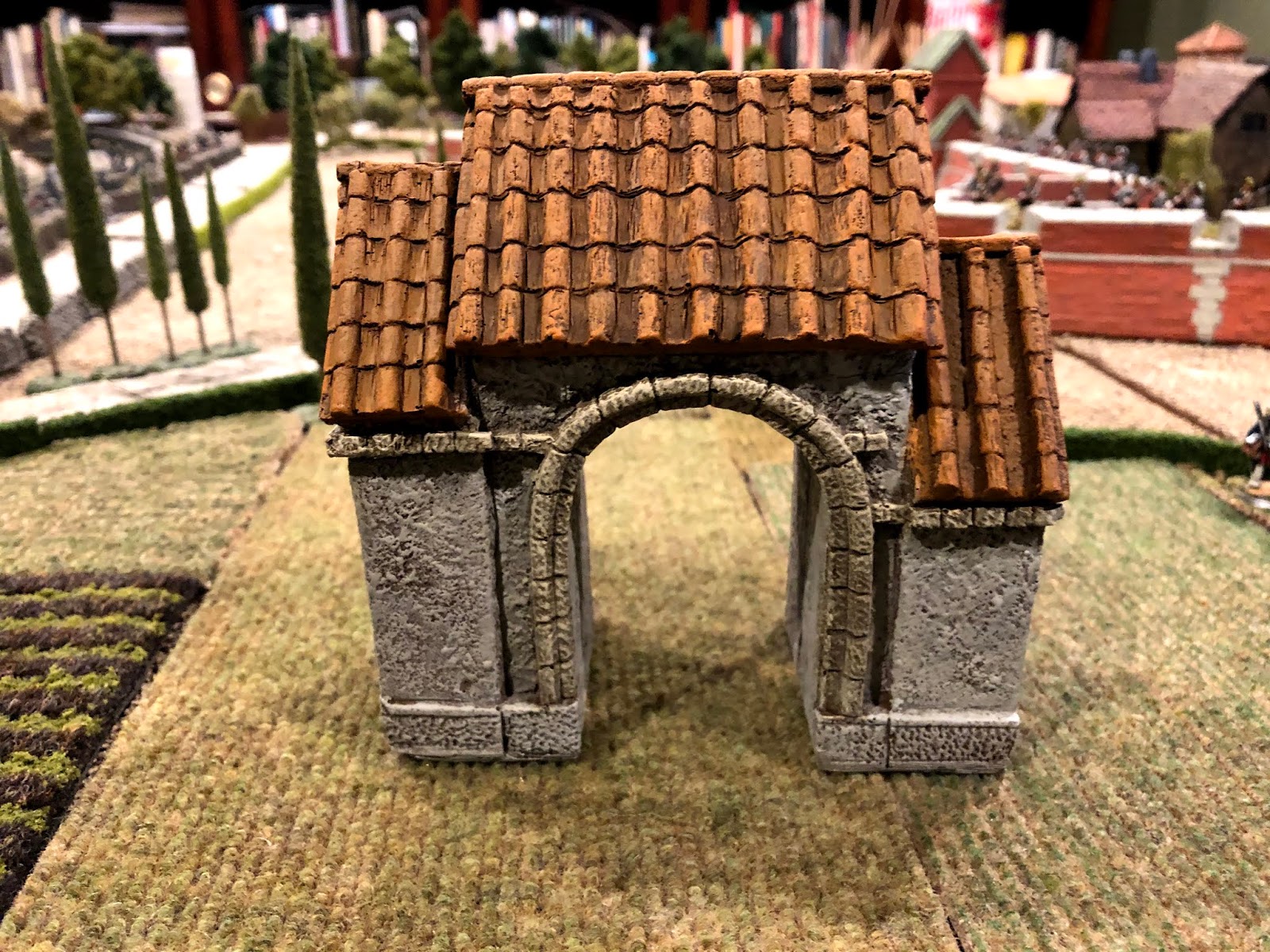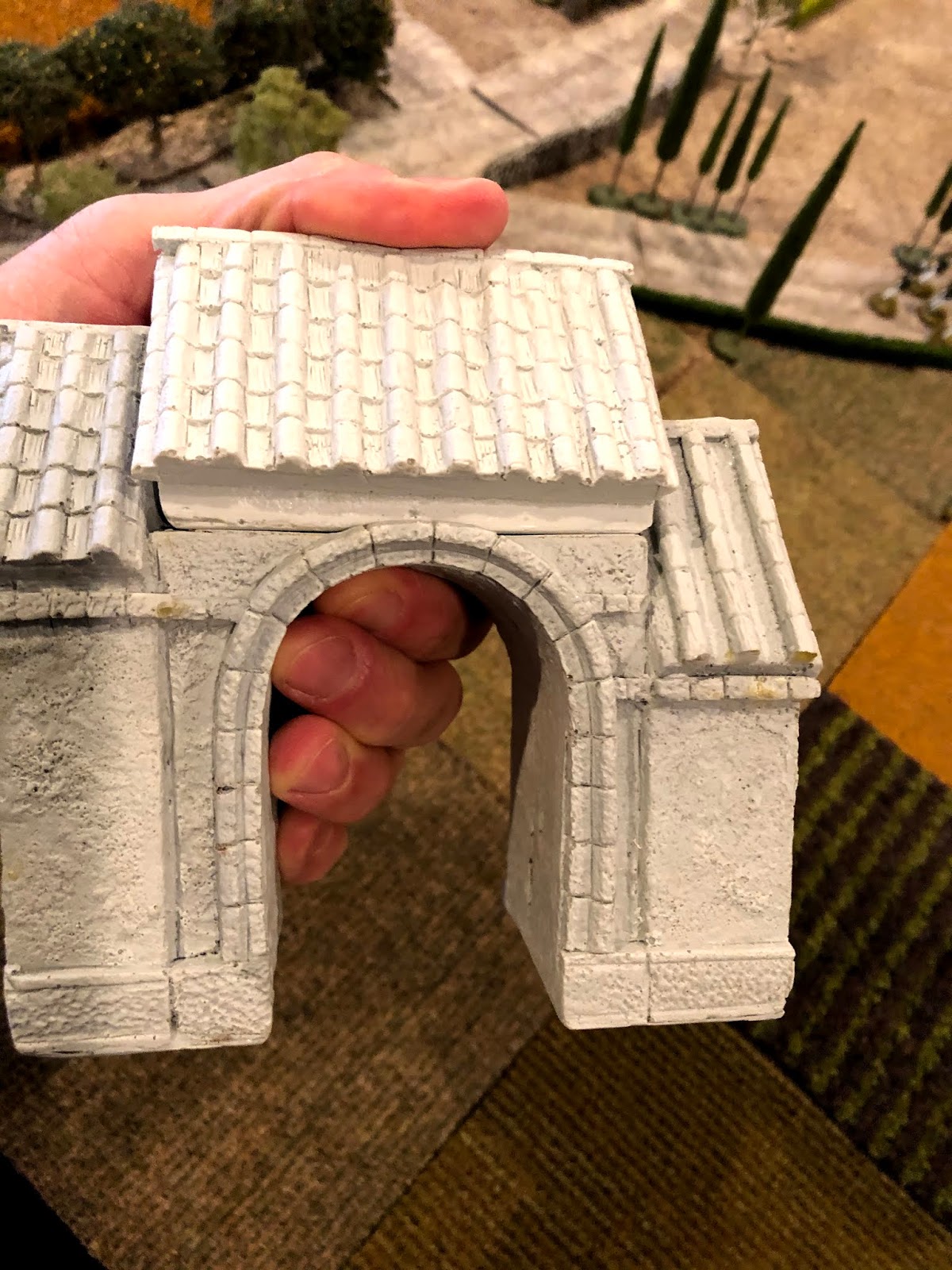 It was a Kobblestone archway from their Mediterranean range. Kobblestone was an interesting company that made some very cool, stylized 28mm buildings, but sadly seems to have suspended operations. Their website is still up and you can visit it to see some nice pics of the models in their various ranges at this LINK: https://www.kobblestone.ca/index.htm